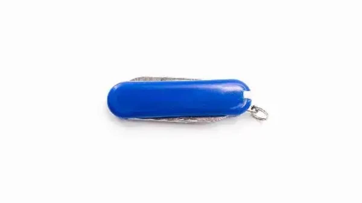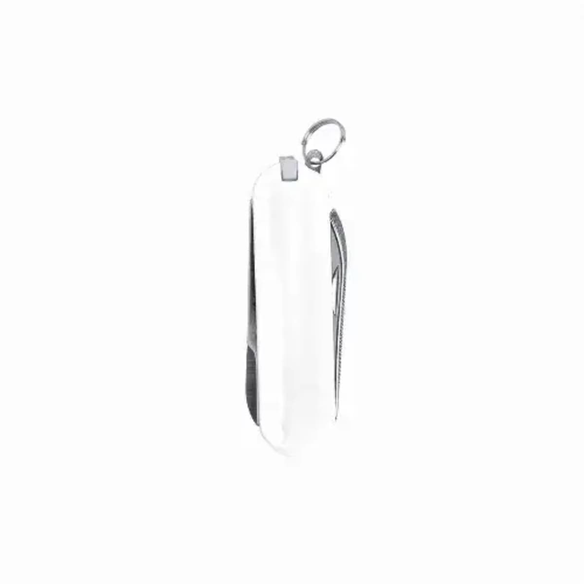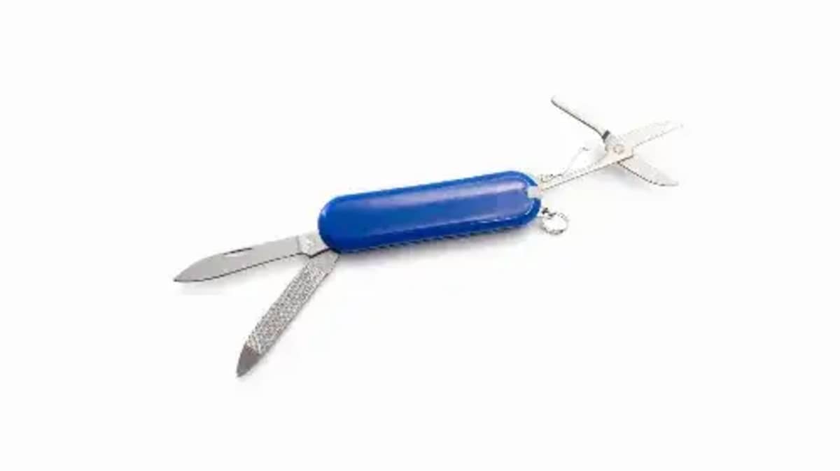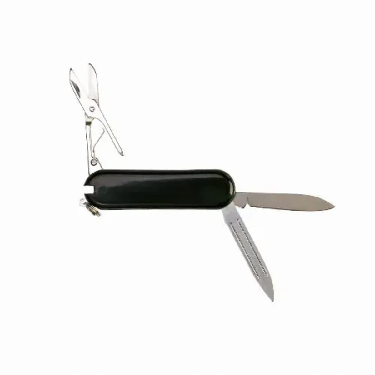 Includes knives, tongs, file, toothpick, keychain and scissors. Presented in an individual box.