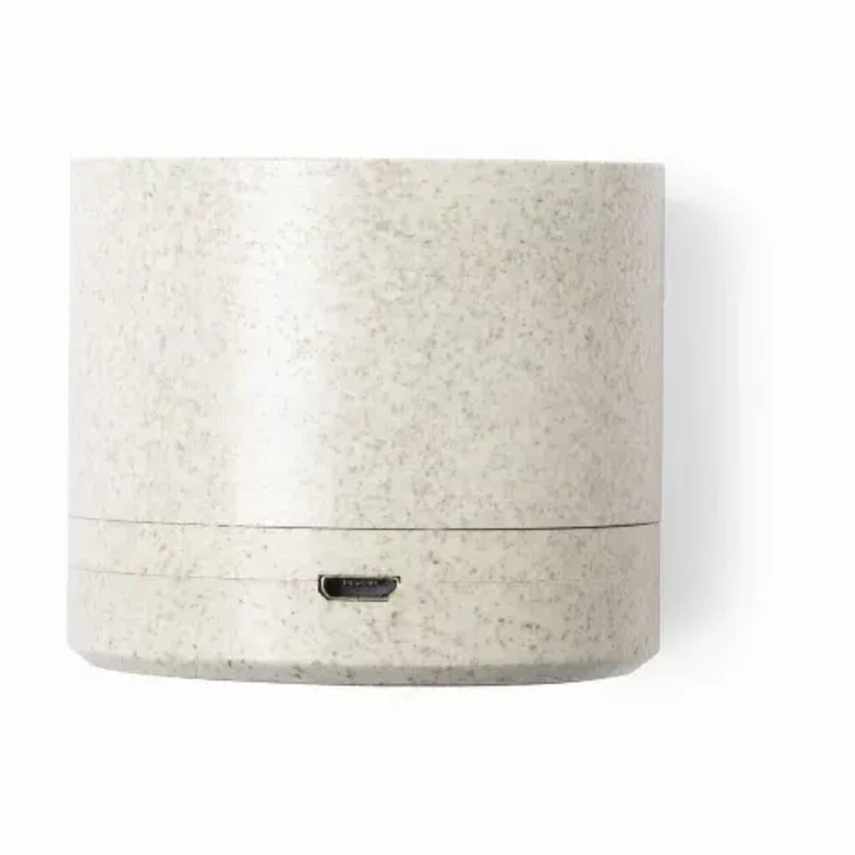 Shell in wheat straw, to encourage the use of natural raw materials and reducing contaminant emissions. 3W of power, compatible with iOS and Android, and including mini USB charging cable. With non-slip rubber pads at the base and presented in an att