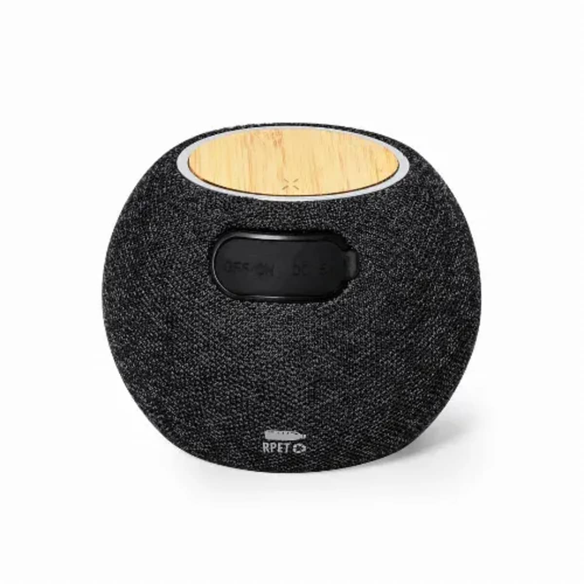 Features:  15W wireless charging for devices with Qi technology. Housing made of bamboo and RPET polyester, 5W power, 1200 mAh battery and Bluetooth® 5.0 connection. Including Type C charger cable. With RPET logo and presented in an individual kraft design box.
