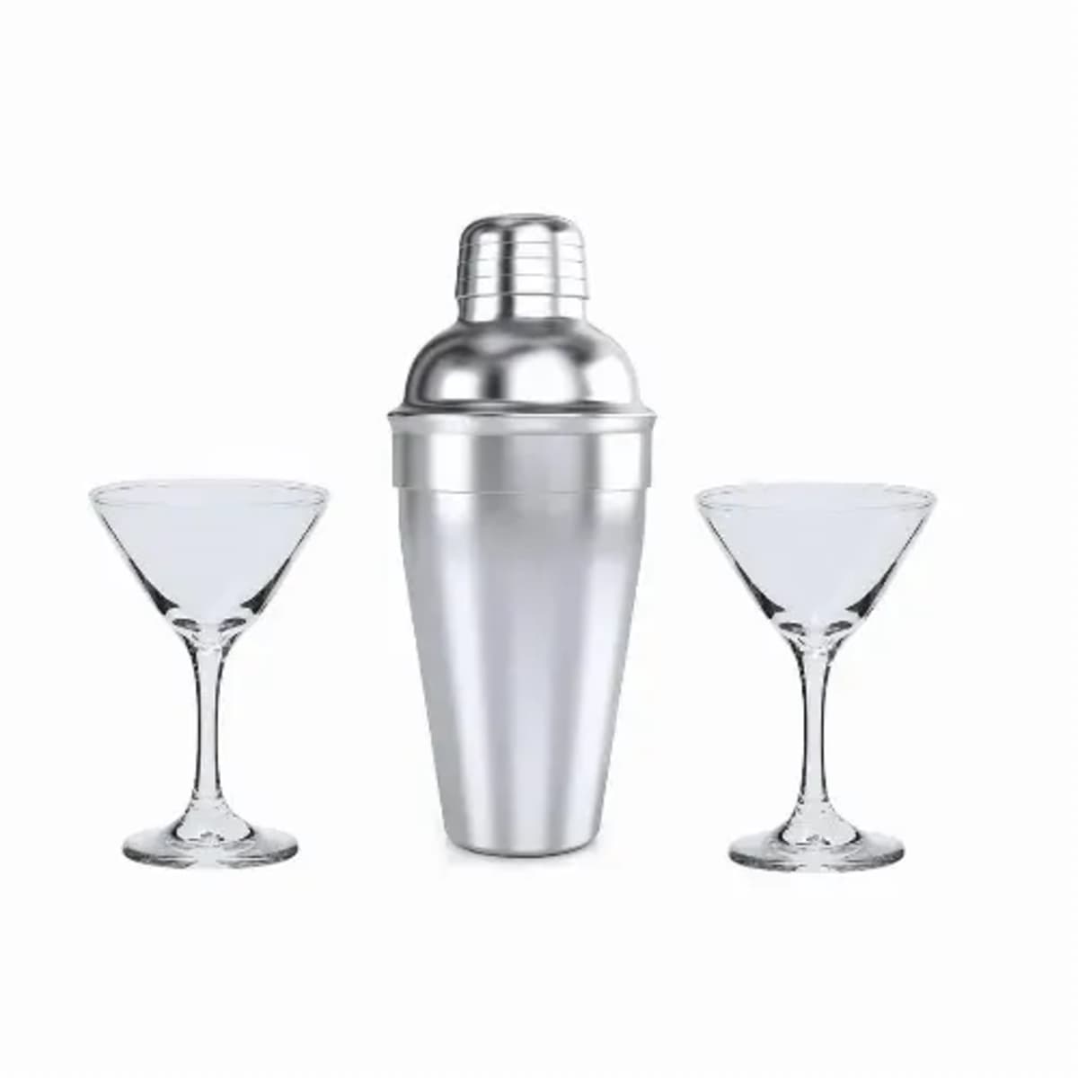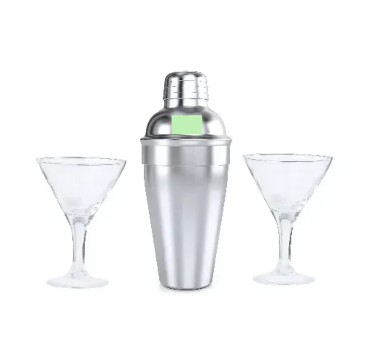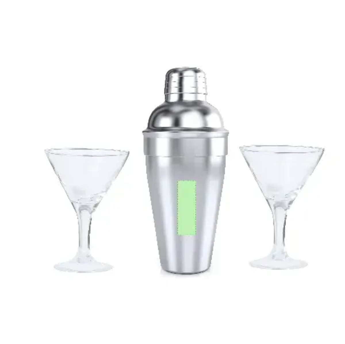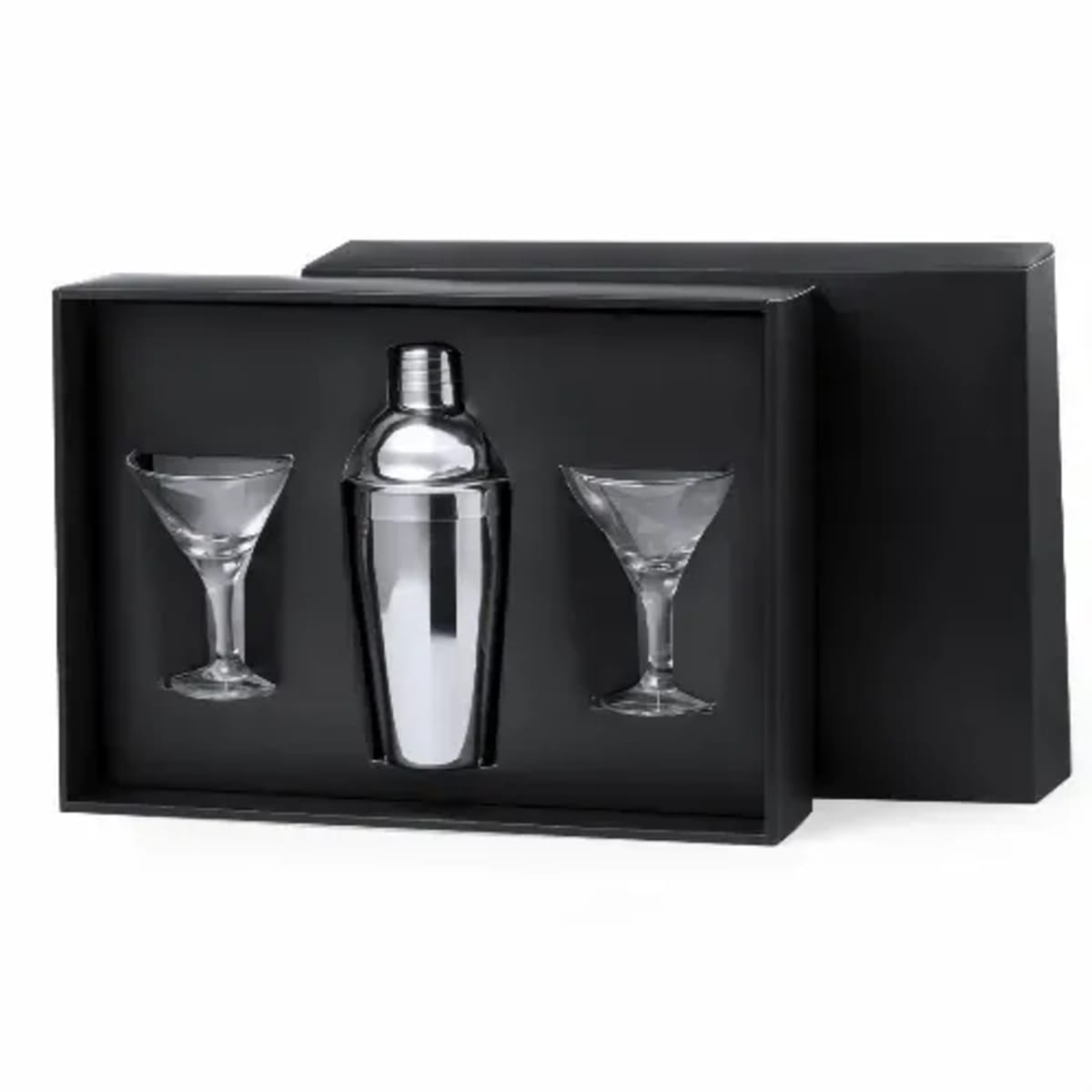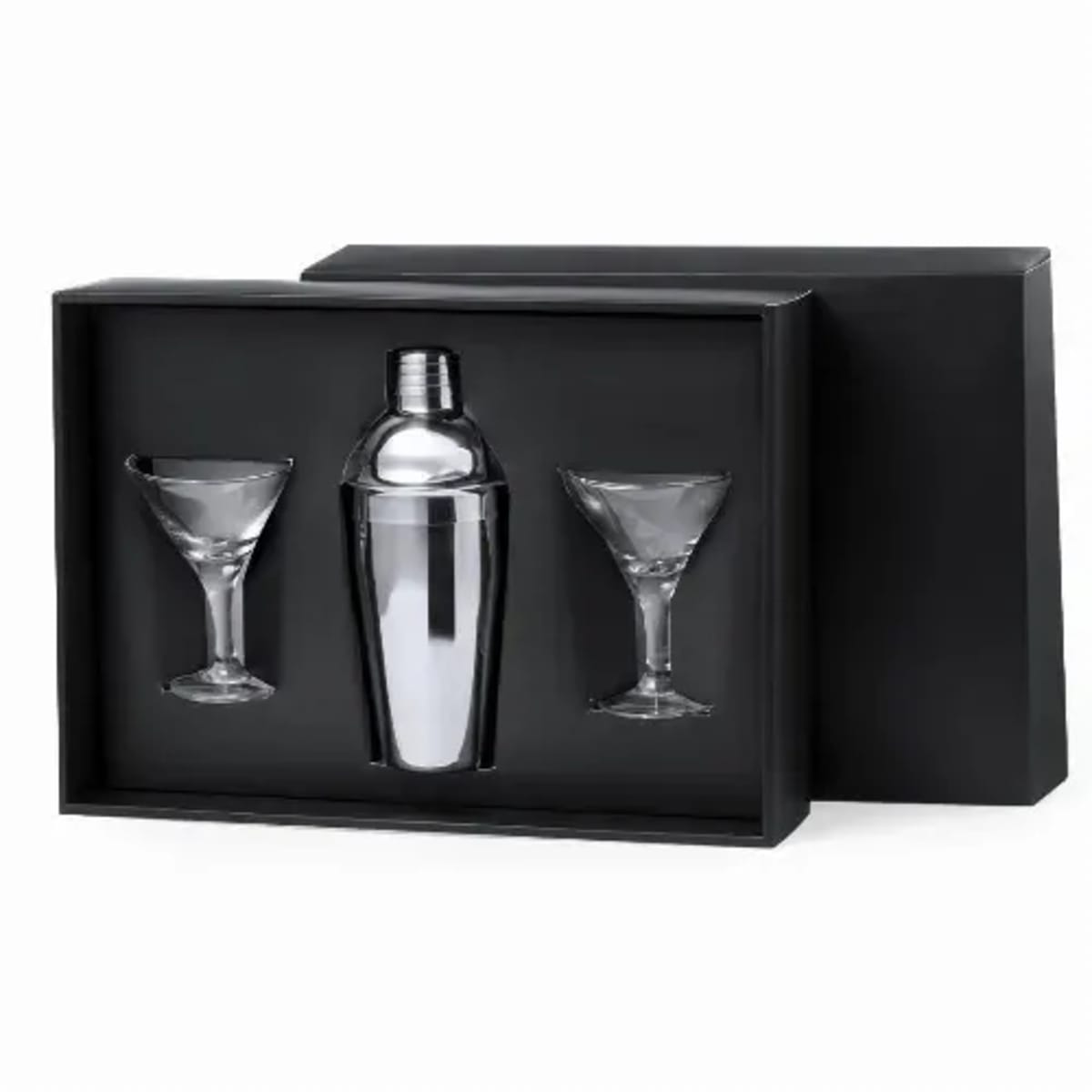 Including a stainless steel cocktail shaker of 550 ml capacity, to prepare the best cocktail mixes. In addition, it contains 2 glass cups of 150 ml each, with an elegant triangular design, for an exquisite presentation. Presented in a black box.
