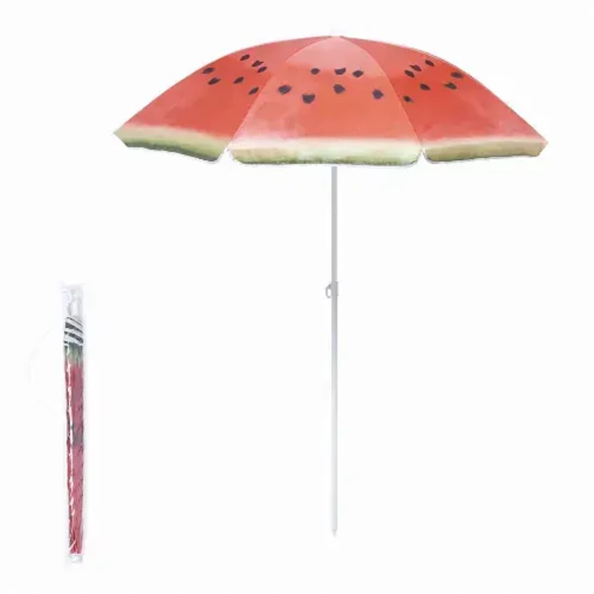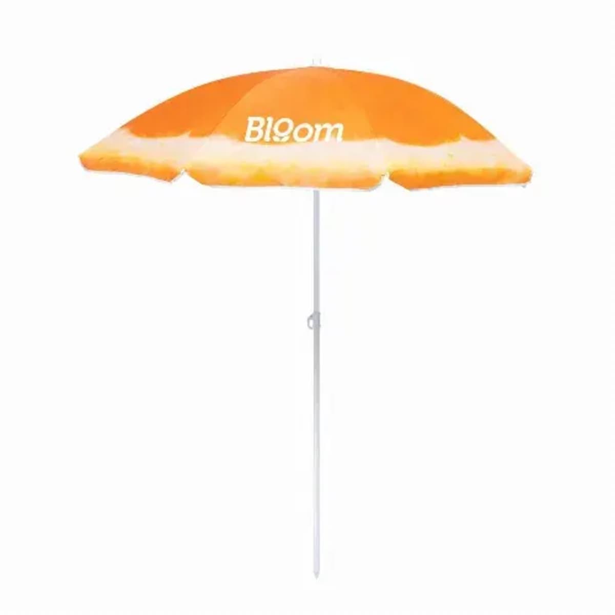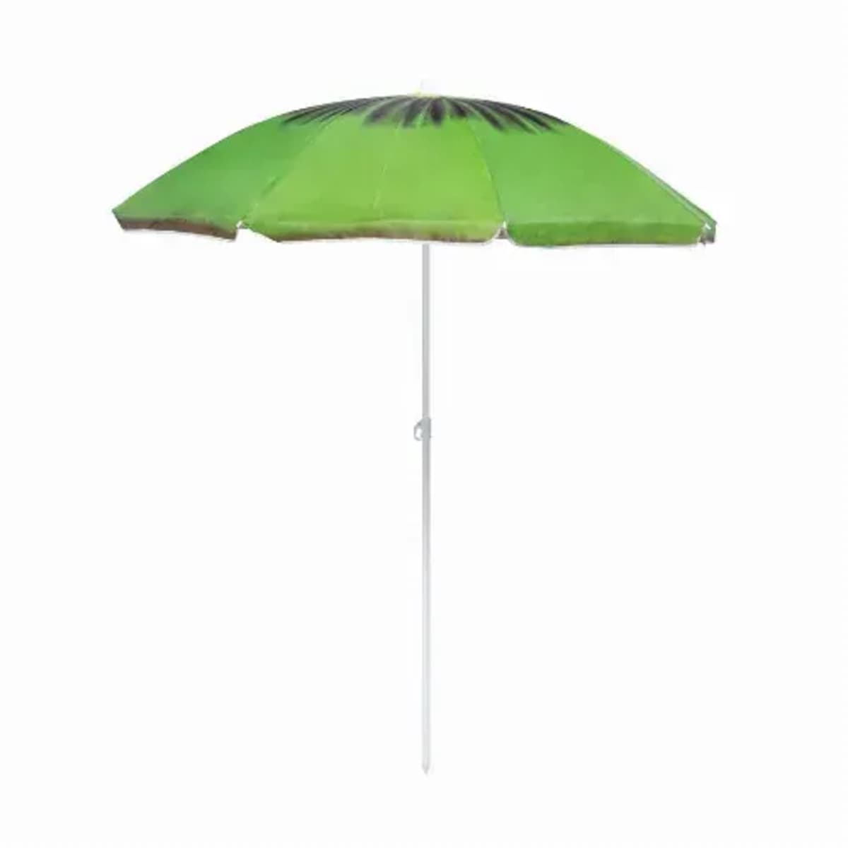 Features:  150 cm in diameter, with 8 panels in durable nylon and side skirts with piping. White coated metal tubes and adjustable in height. Presented in a transparent bag with shoulder strap.