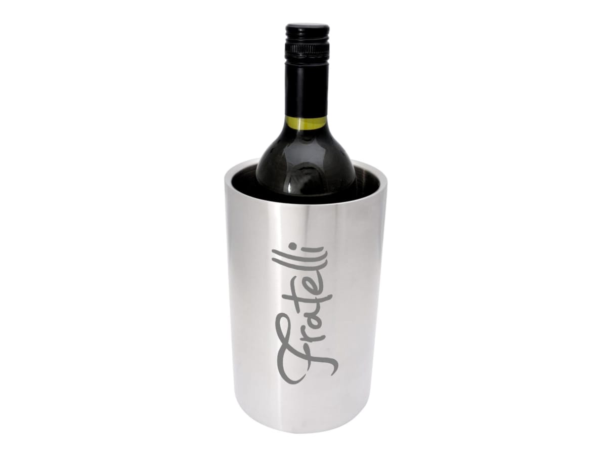 Designed to keep wine cool this stylish double-walled wine chiller is crafted from solid stainless steel and makes the perfect executive gift.