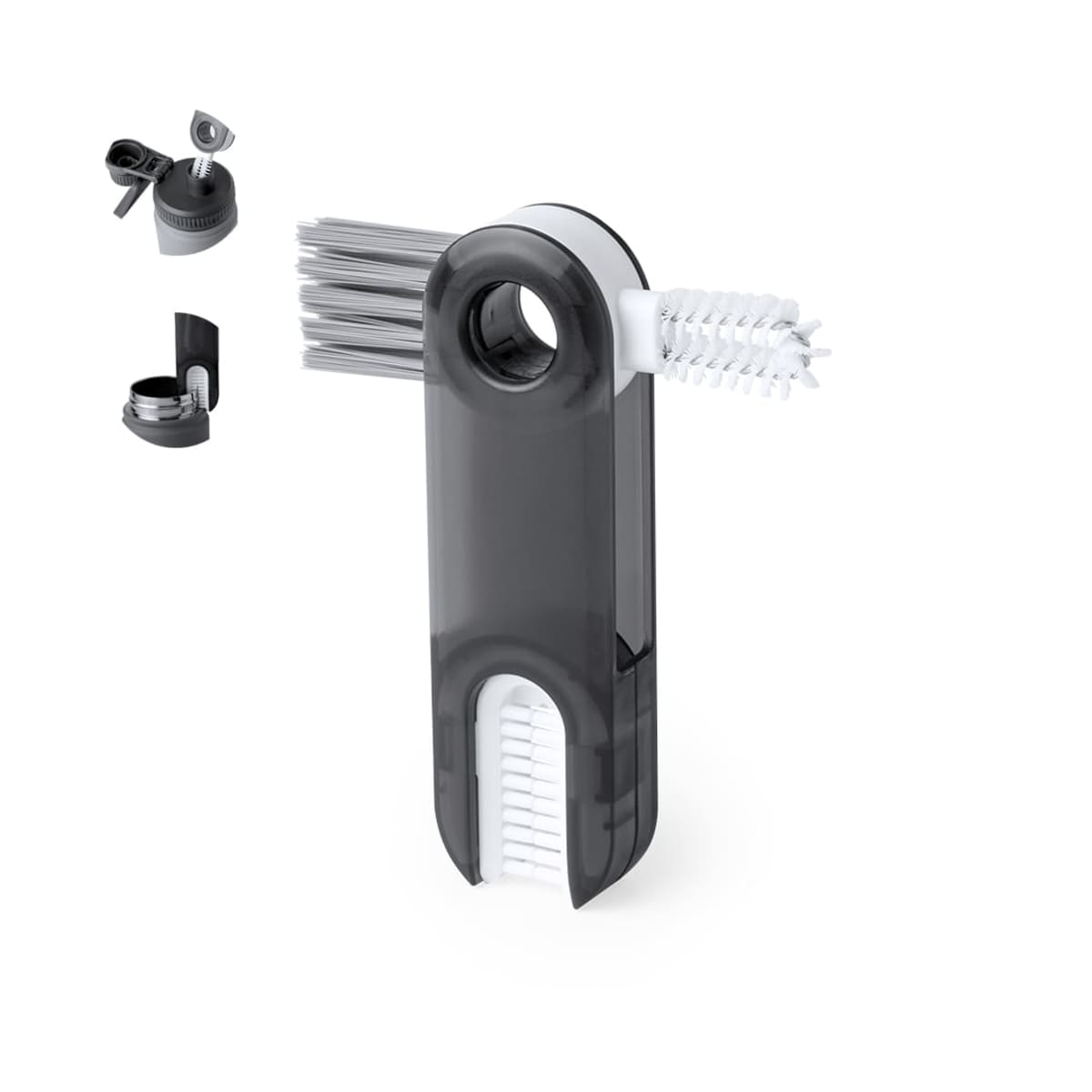 Features:  Includes 3 brushes with different types of bristles, ideal for the proper cleaning of hard-to-reach parts of the containers. Made of durable ABS material, with a flat branding. Presented in an individual kraft design box.