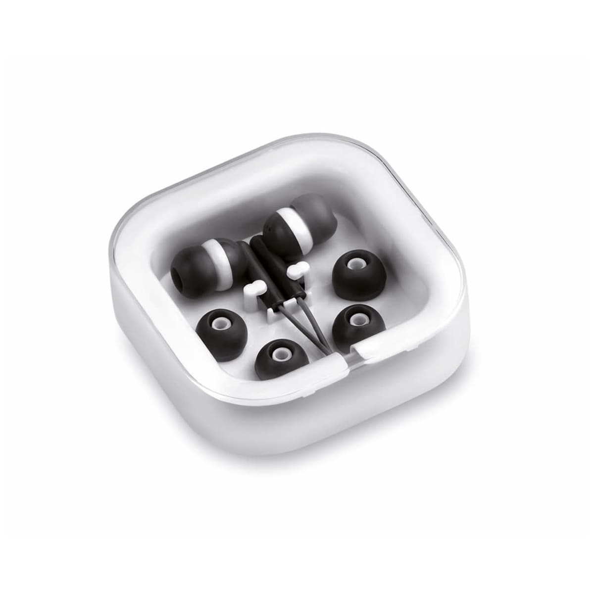 Handy and comfortable earphones with a casual two-tone design, 3.5mm jack connection and matching color cable.