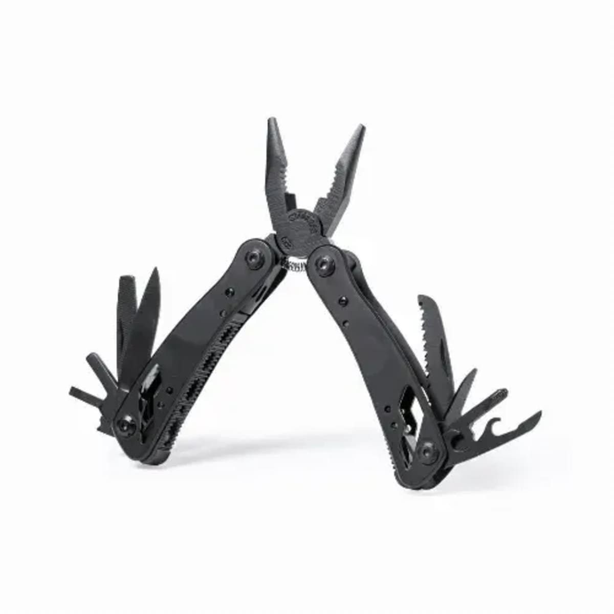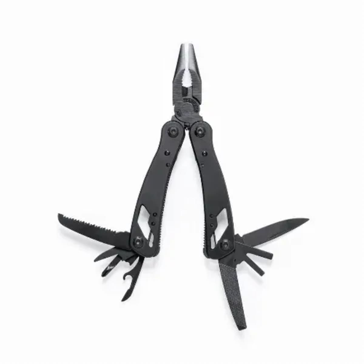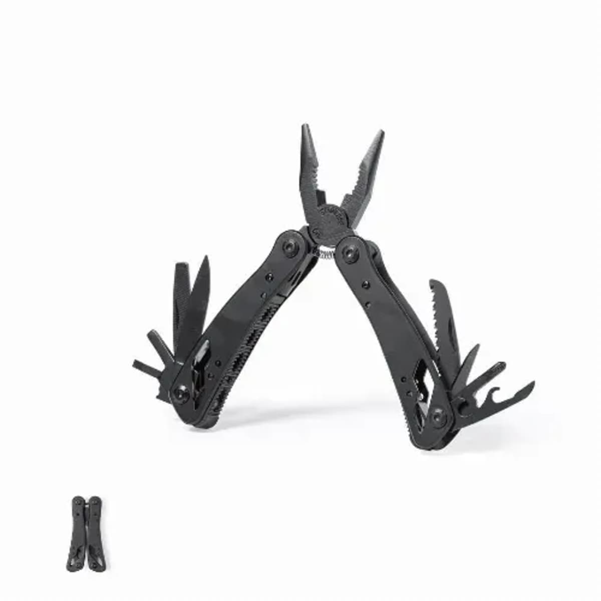 Features:  With 13 functions, including knife, screwdriver, file, opener, and pliers. Foldable and compact in size, presented in an individual box in black design.