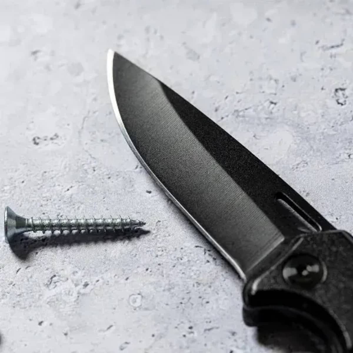 Knife with blade in stainless steel with black finish, and matching resistant aluminium handle.
