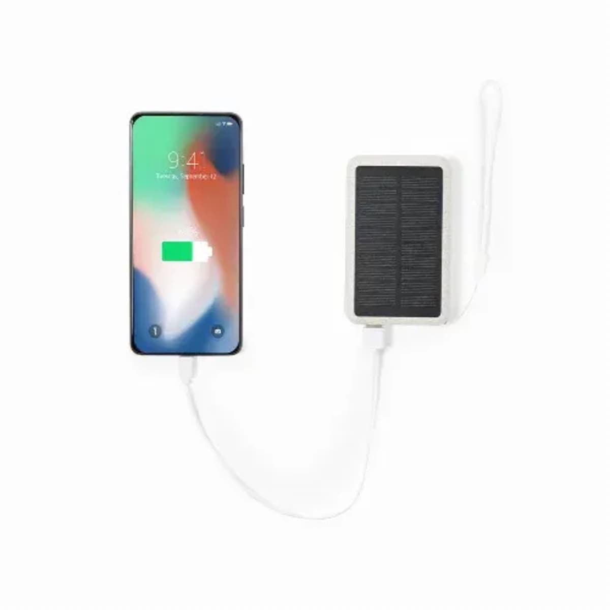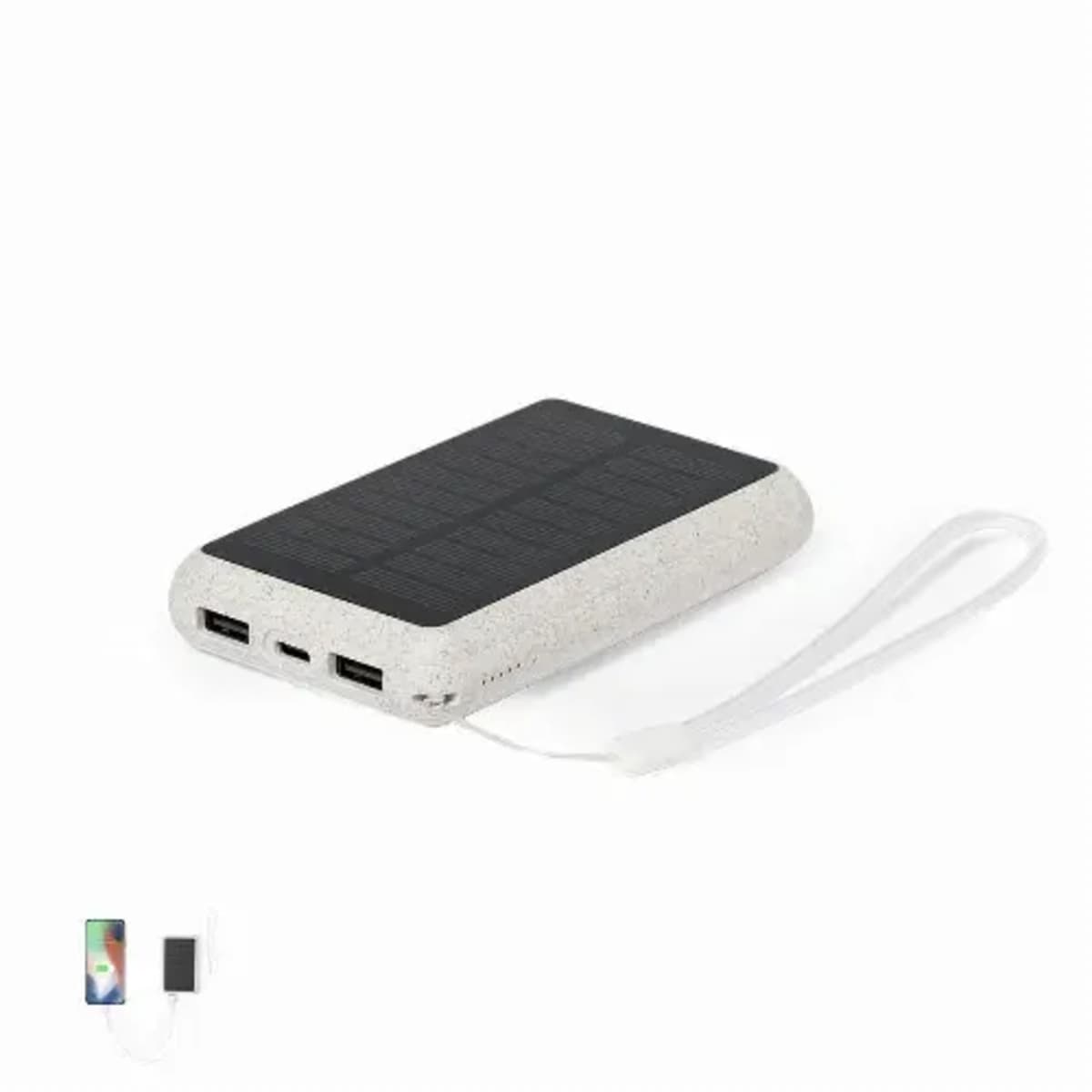 External auxiliary battery, solar rechargeable, made of wheat straw.