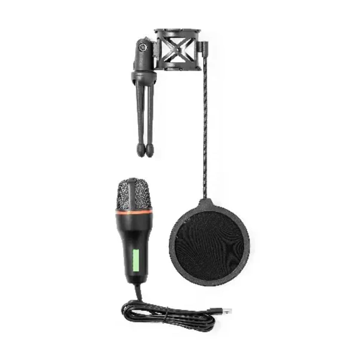 With noise reduction system and anti-pop filter to prevent unwanted pops and/or hissing when producing sounds such as t, p or s. Backlit by multicolour LEDs and with easy plug and play connection system via USB cable, compatible with PC and other dev