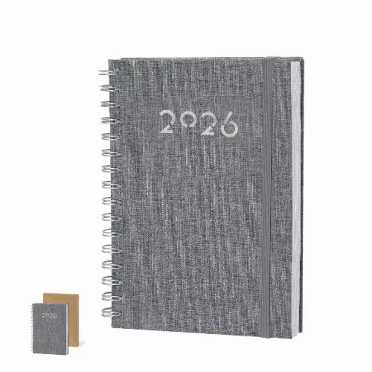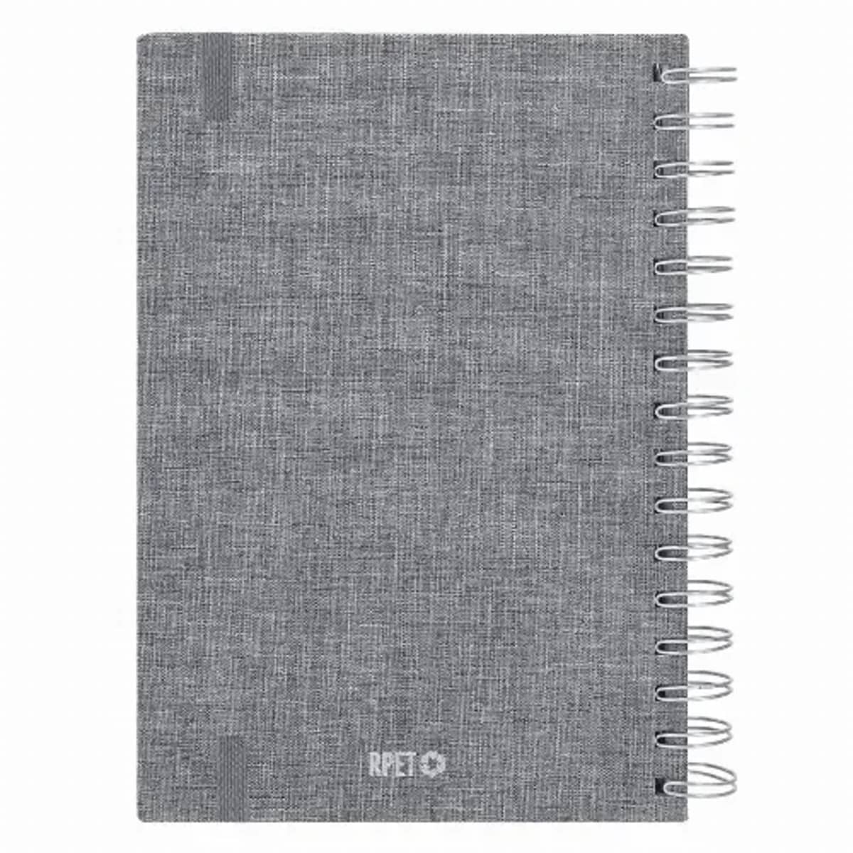 It includes a kraft presentation box and an RPET logo.Daily page, with an area for notes and fabric bookmark. In 2 languages: English and Spanish.RPET material is made from recycled plastic, thus promoting the reuse of plastic waste and helping the s