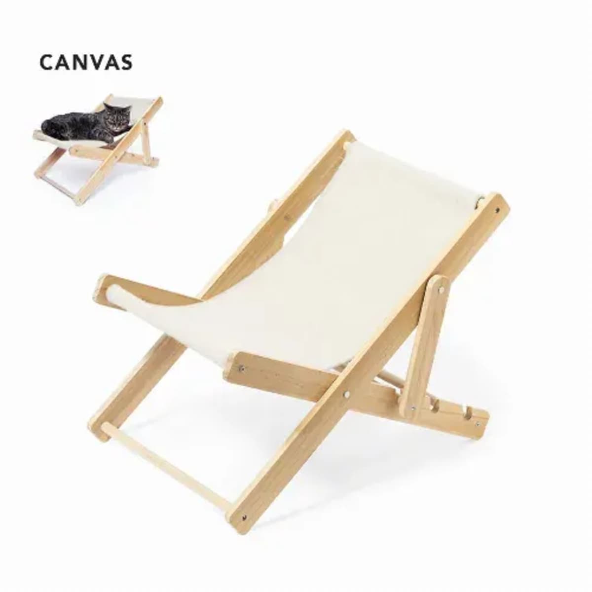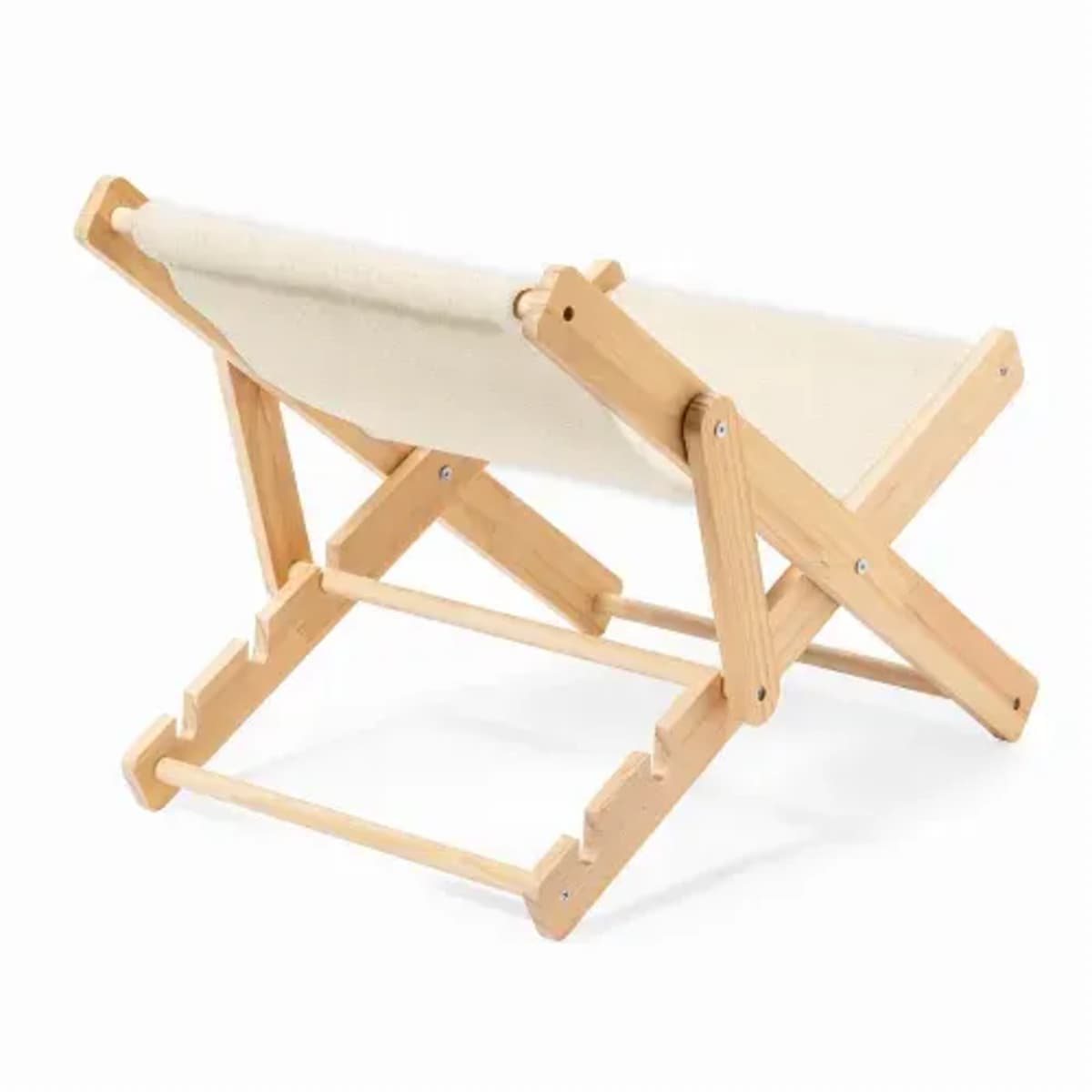 Ingeniosa silla de mascotas, con estructura fabricada en sólida madera y asiento en confortable tejido canvas, de acabado suave y resistente.