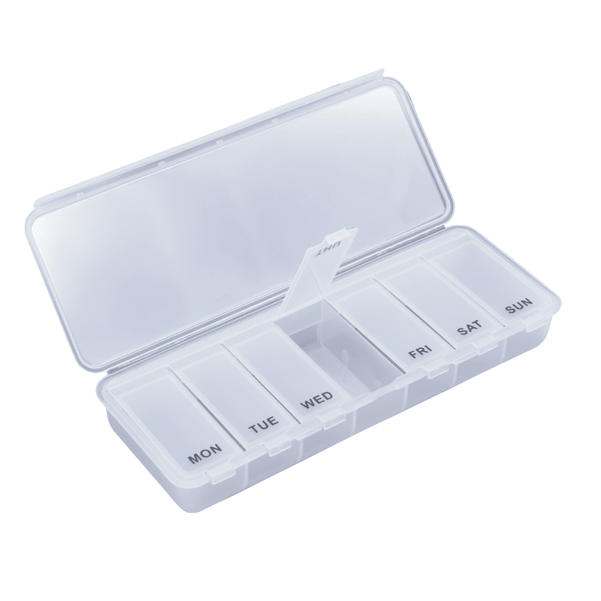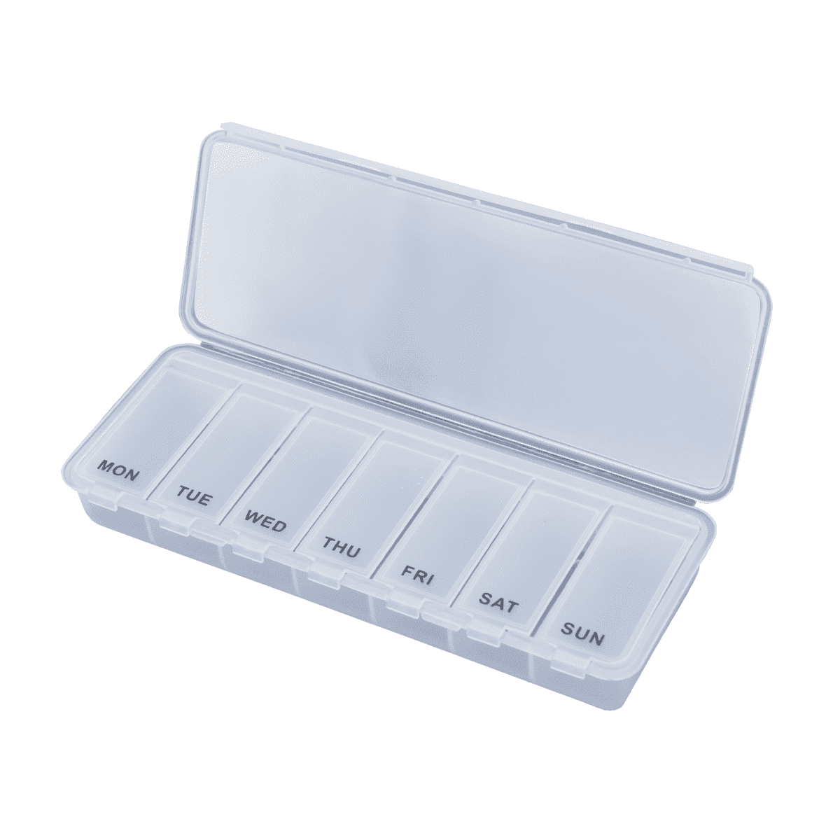 Stay organised with this handy plastic pill box! With a simple weekly distribution, it makes managing your medications a breeze. Keep everything in check and never miss a dose again!