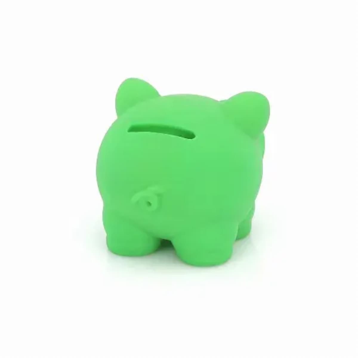 Piggy bank with soft rubber finish in bright tones..