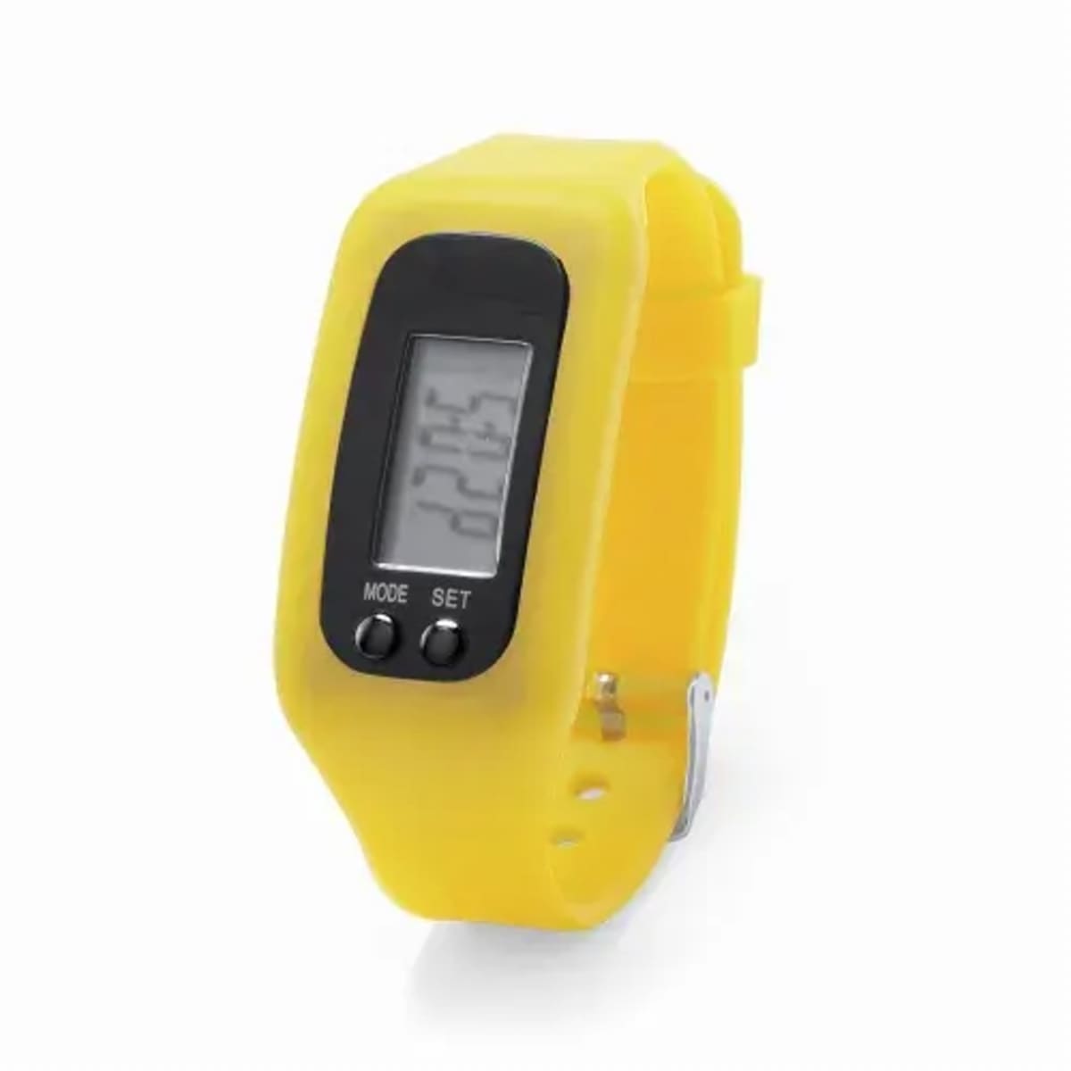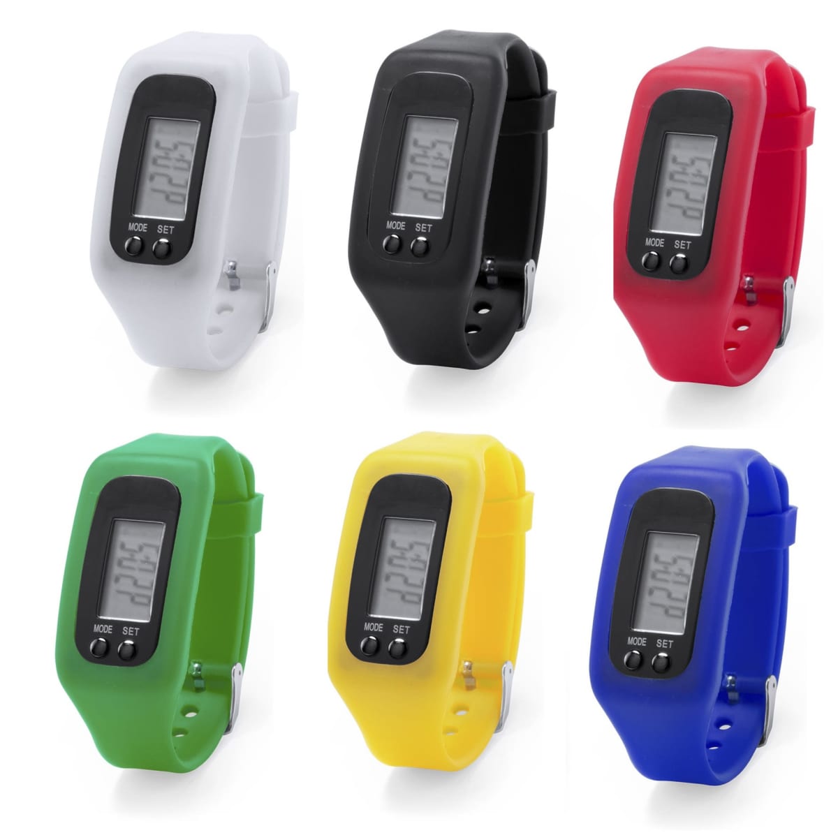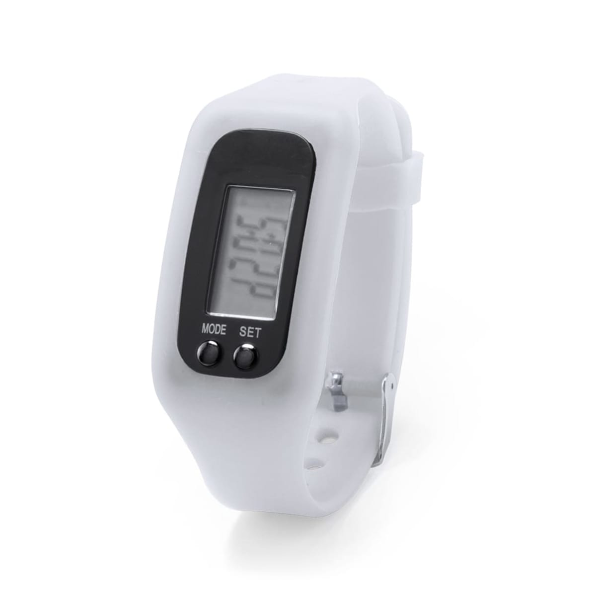 Rectangular, LCD screen, sporty digital watch with adjustable silicone strap and water splash resistant.