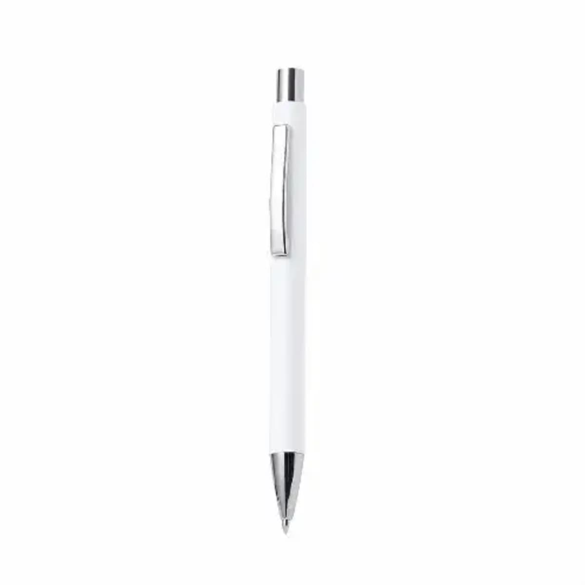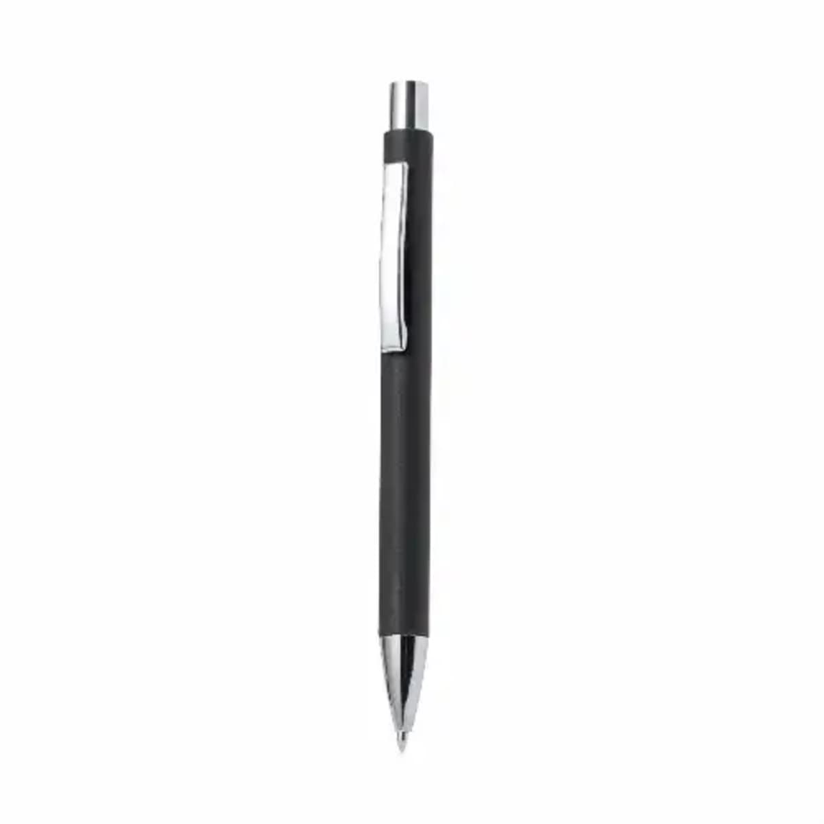 Stylish push-button ball pen with recycled paper barrel and shiny silver metallic fittings.