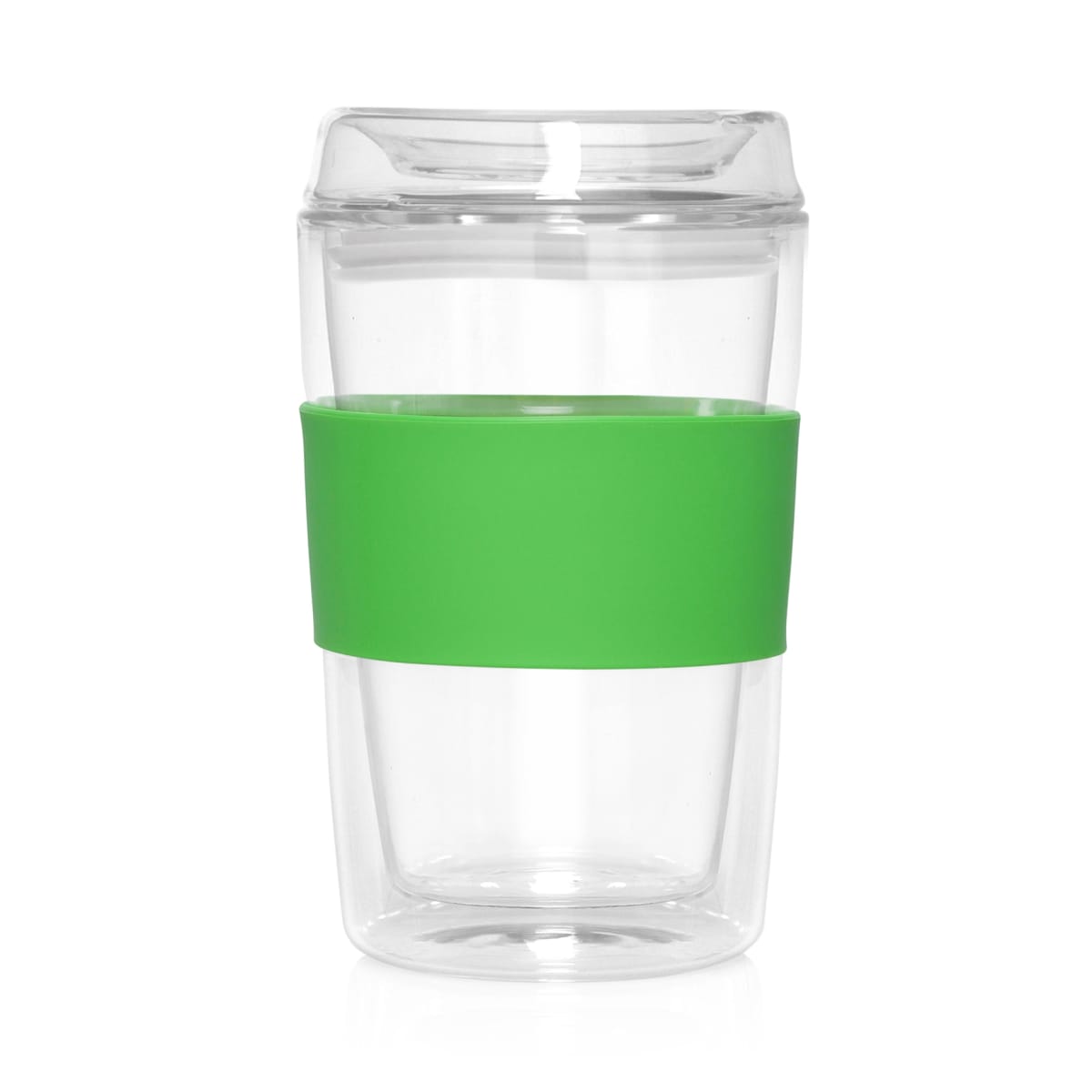 Features:  **Borosilicate Glass** *Double walled design keeps hot drinks hot without burning your fingers*Colourful lid and sleeve*300ml capacity*Can be used with or without the lid, in the car or in the office*Not microwave or dishwasher safe*Sold in a retail