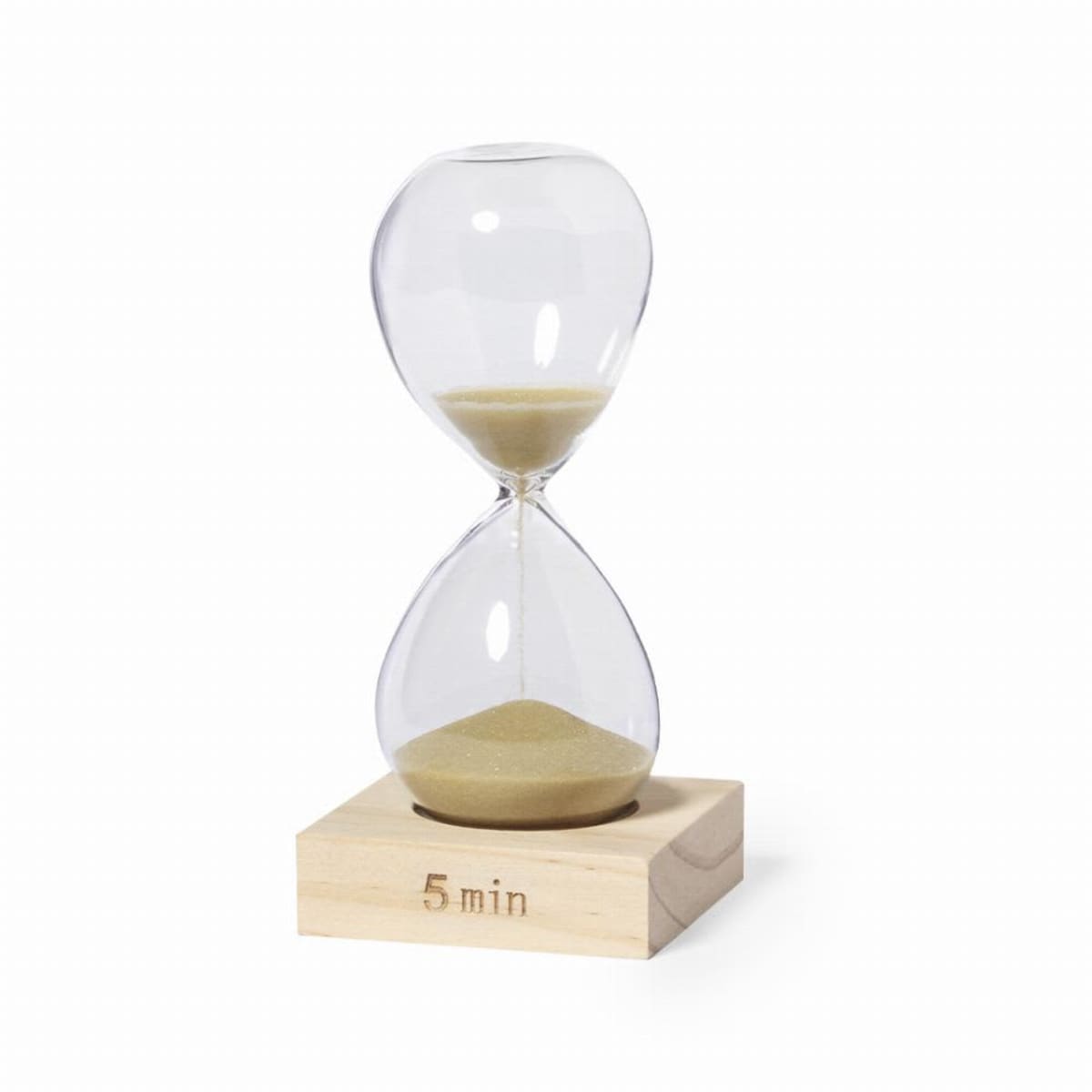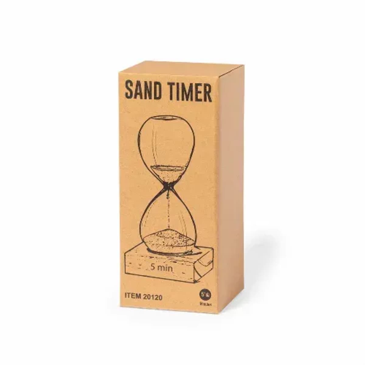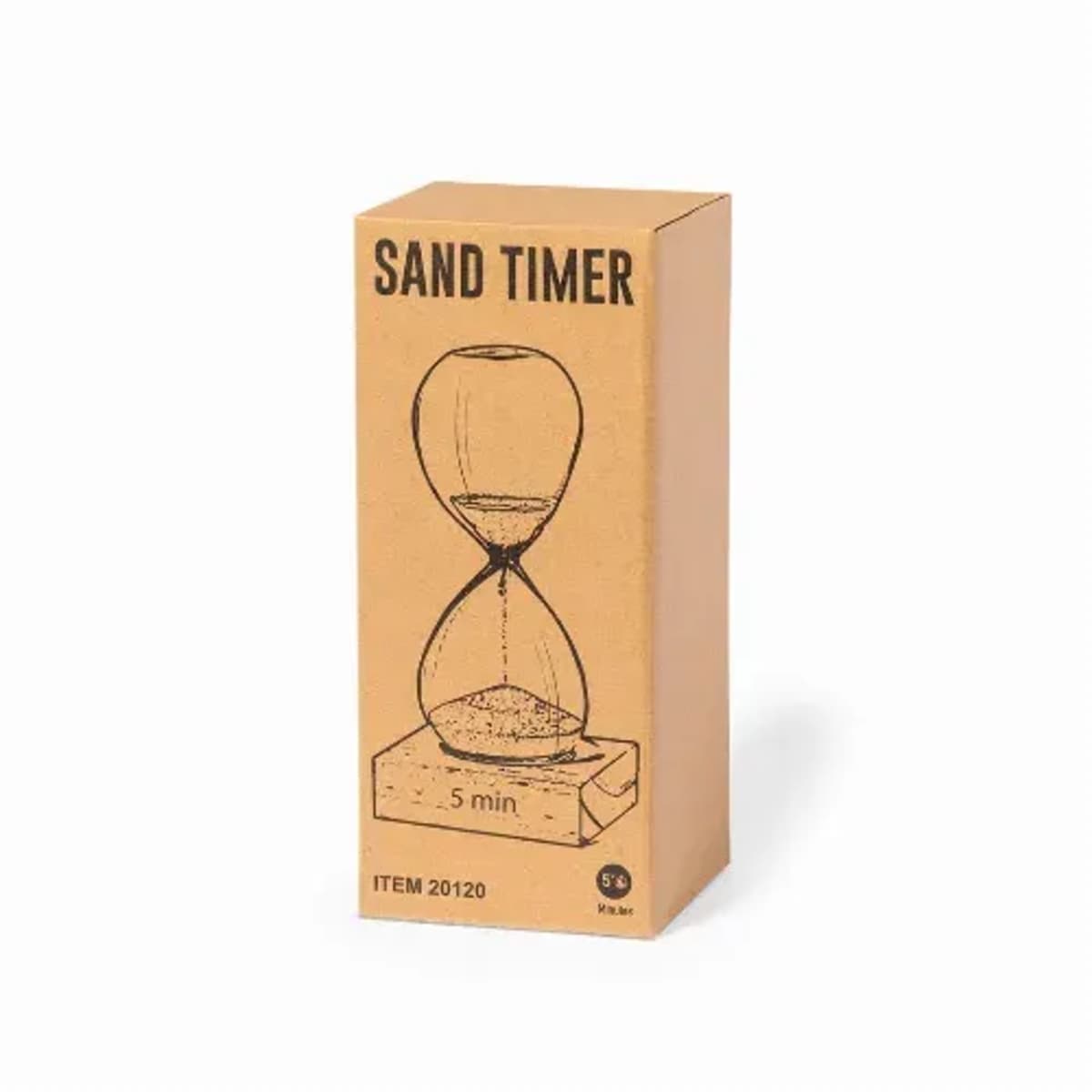 Made of borosilicate glass, which offers exceptional strength and durability, with a natural pine wood base. Its elegant design and natural coloured sand make it a decorative and functional gadget, ideal for measuring time. Presented in an individual