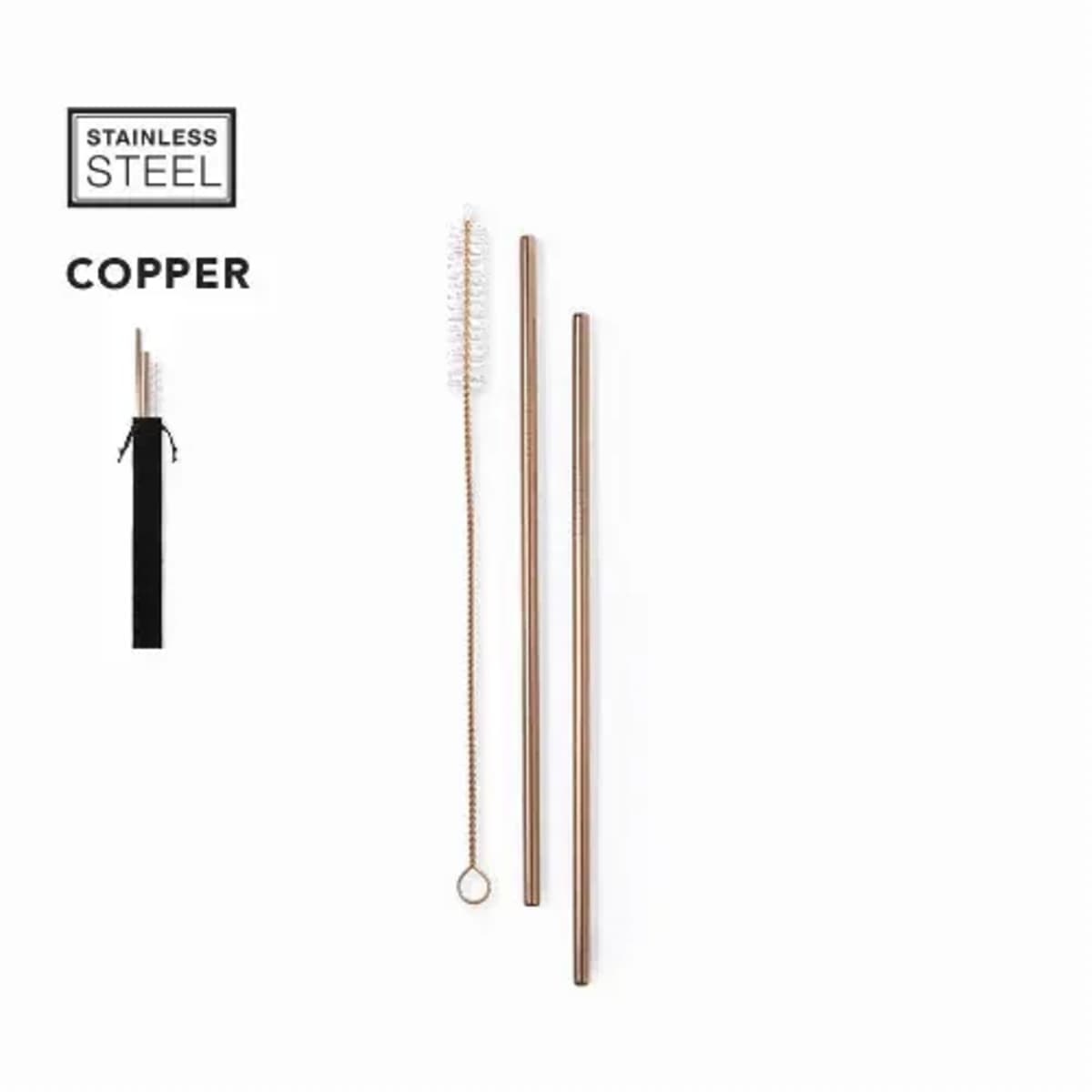 2-piece set of straws made in stainless steel with outside galvanised copper coating.