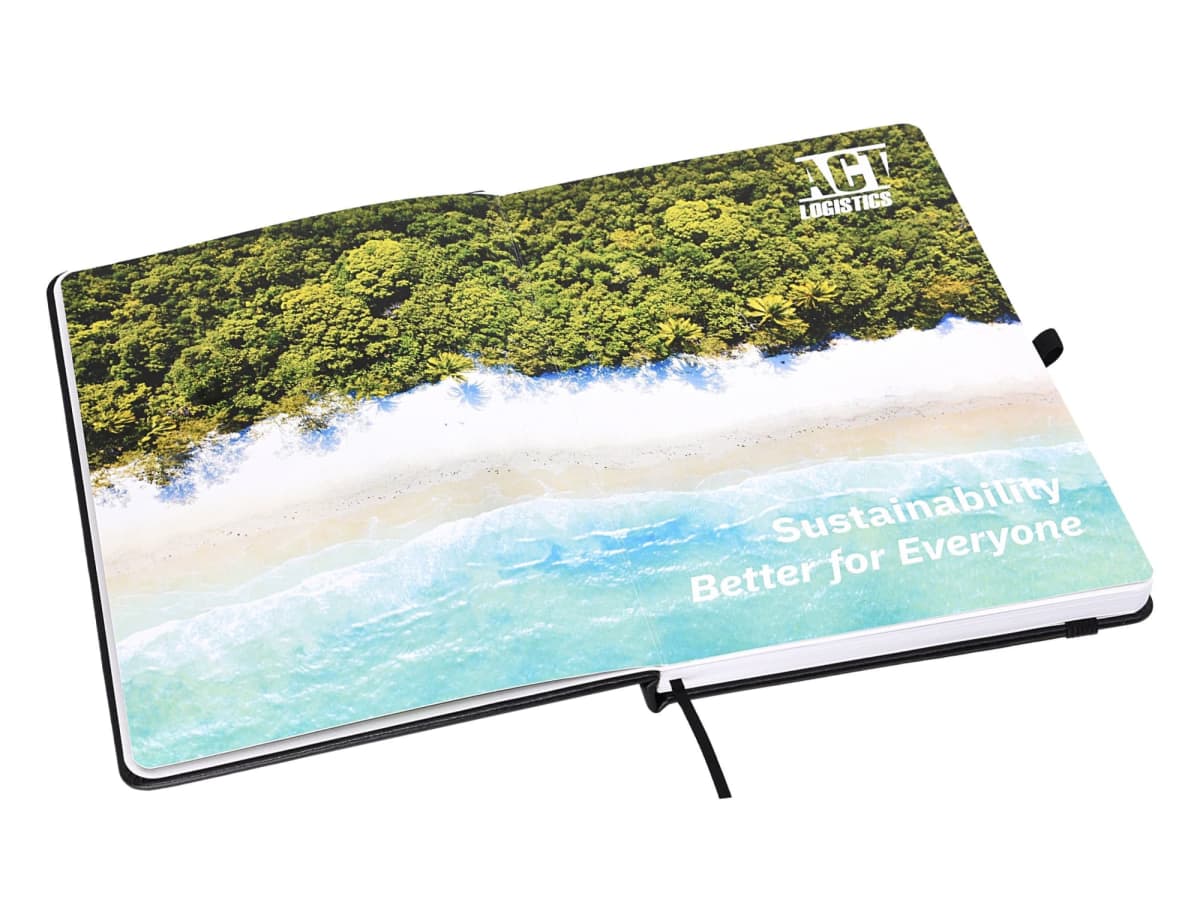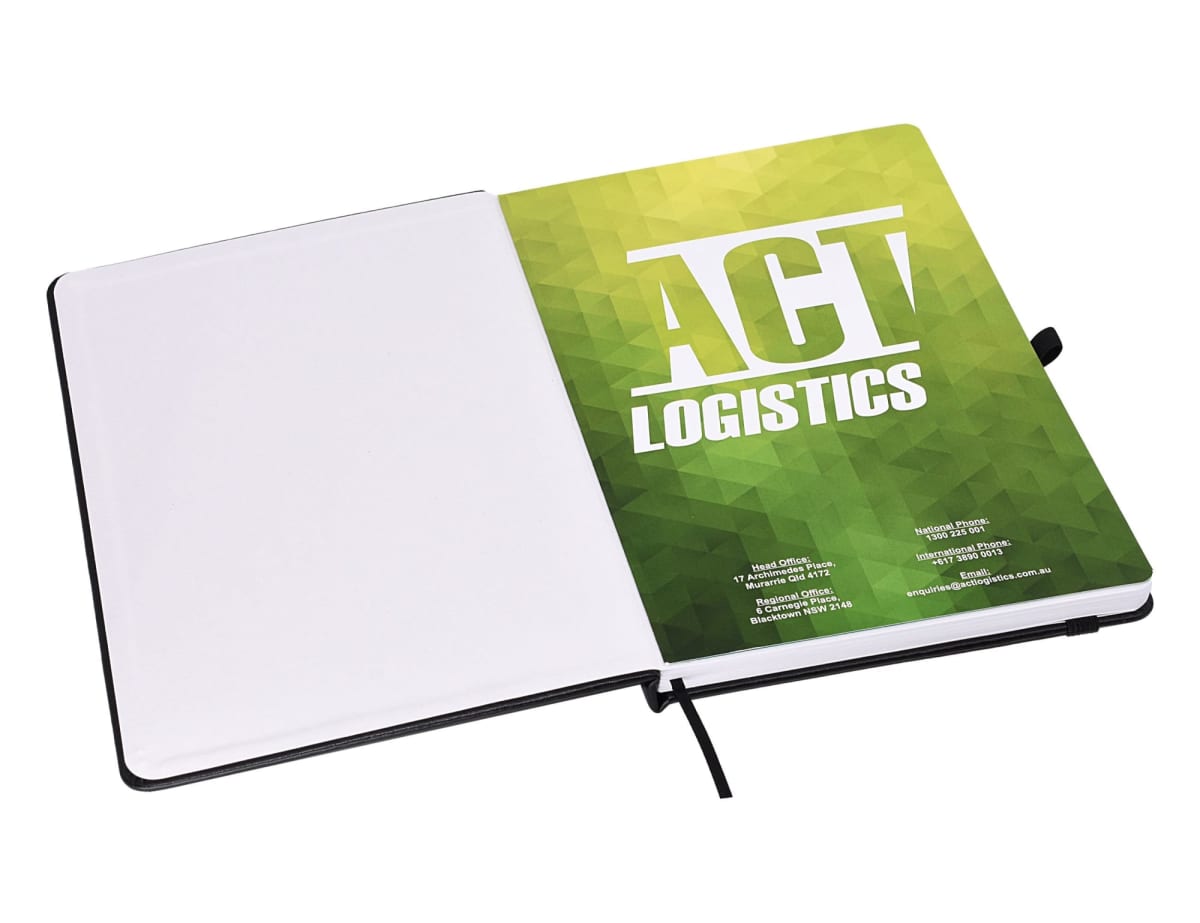 Our internal flysheet is printed in full colour and attached to the inside cover of our notebooks. These fly sheets provide 3 pages of printable space and are ideal for adding detailed information like product specifications, full colour images, data tables or calendars. We can add these fly sheets to all of our in-stock hard covered notebooks. This is a perfect notebook add-on!