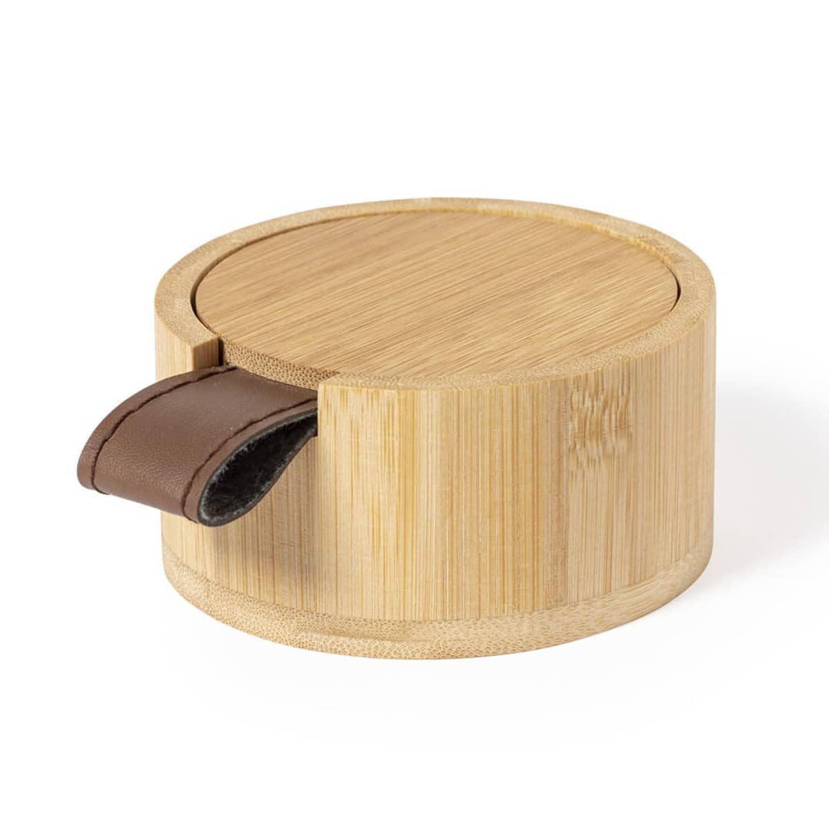 With 4 inner compartments, lid with PU handle and 1X mirror of 6cm diameter integrated in the lid. With protective film and presented in an individual, eco-designed box.