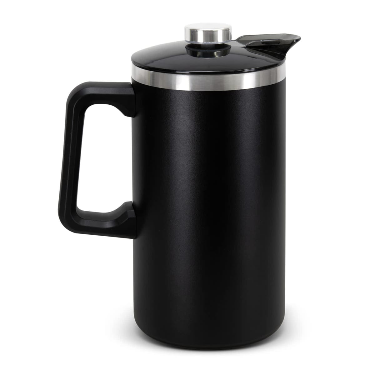 A double wall vacuum insulated coffee press from Frontier that boasts a 1.1L capacity. Designed to keep coffee hot for longer, it is made from durable stainless steel with a black powder coat finish and is ideal for home, office, or outdoor use. The precision filter keeps grounds separate for a smooth brew every time. BPA-free and built to last, it comes presented in a natural gift box with Frontier branding. Features: * 1.1L double wall vacuum insulated coffee press * Made from stainless steel with black powder coat finish * BPA-free * Filter is designed to keep coffee grounds separate once pressed * Presentation: Natural kraft packaging with Frontier branding