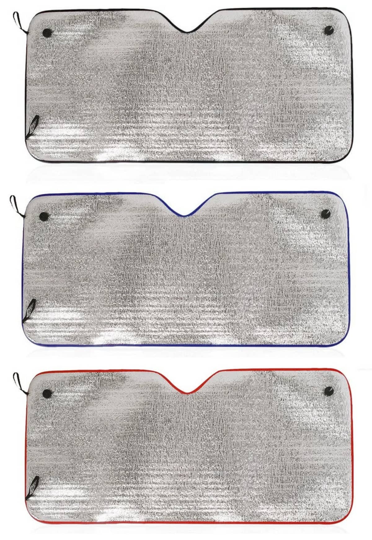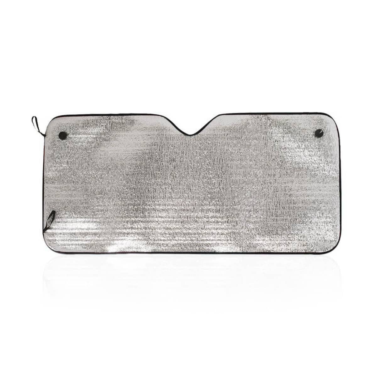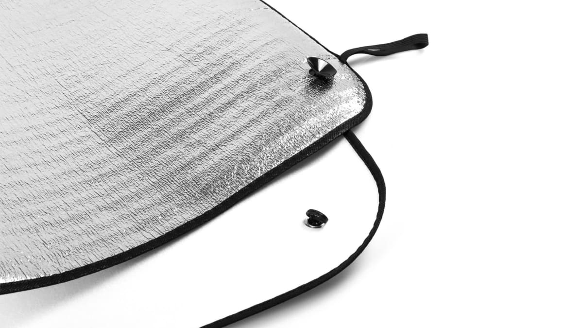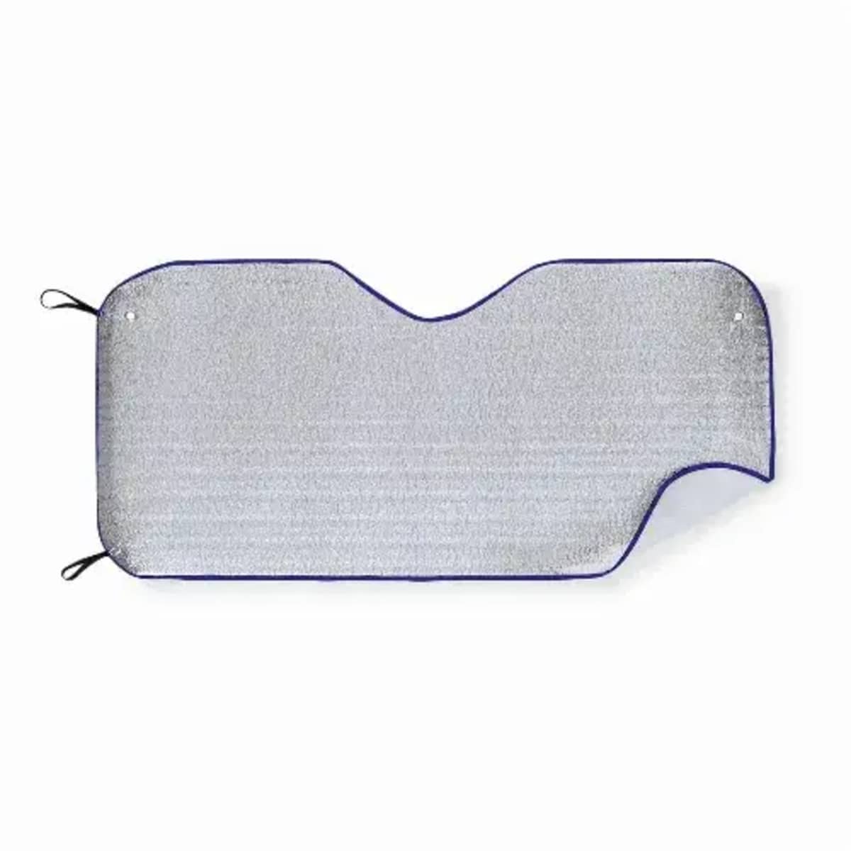 Size 130 x 60 cm, with non-woven piping and elastic bands in black. Including 2 metal eyelets and two suction cups for fitting to the windshield.