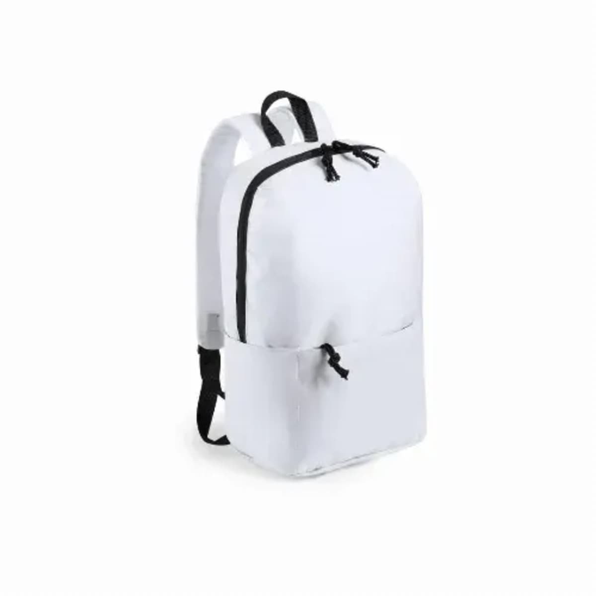 With double puller zipper pocket, front pocket with hidden zipper and big size side pocket. Reinforced corners and accessories in black color. With padded back and adjustable, padded, shoulder straps. White color especially manufactured for sublimati