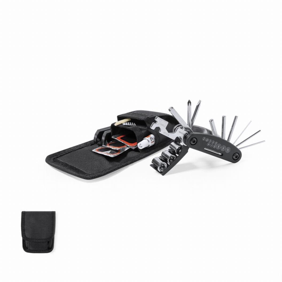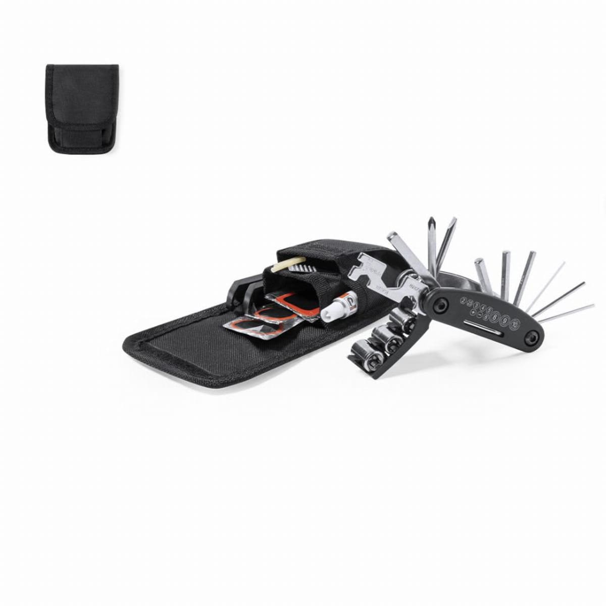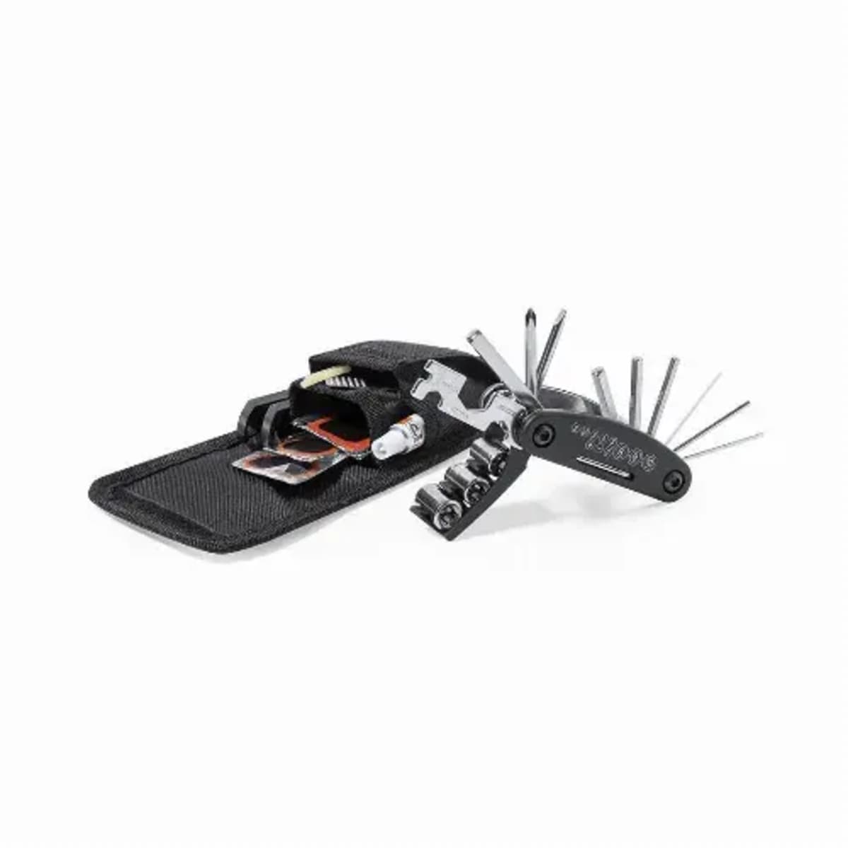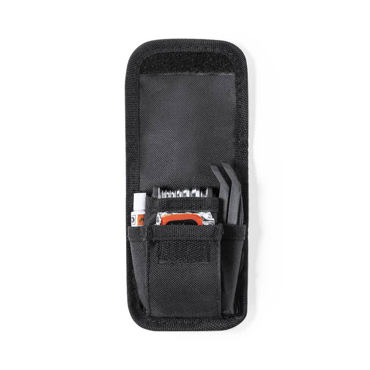 Packed in a durable 600D polyester case with velcro closure. Including tyre changer, multi-tool and puncture repair kit.