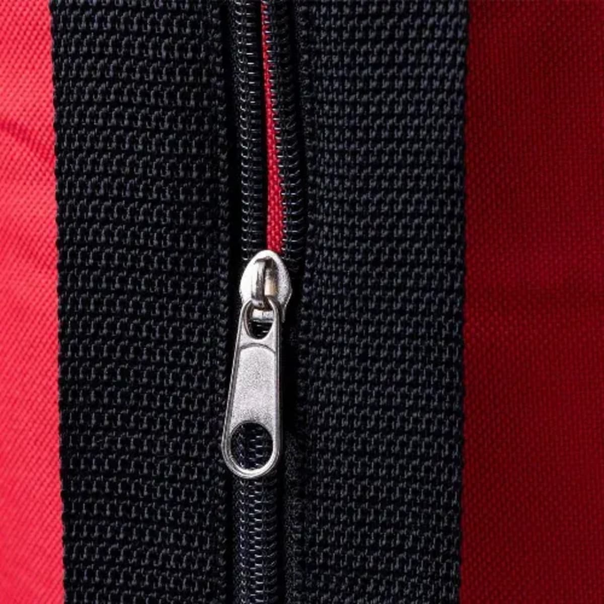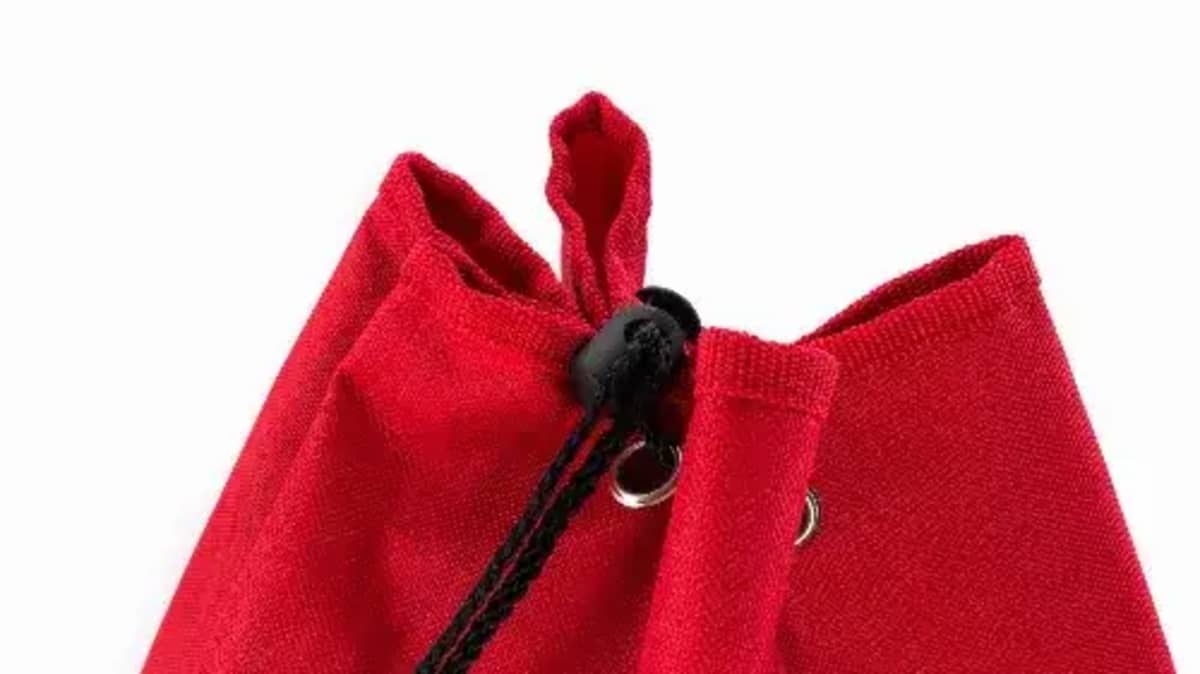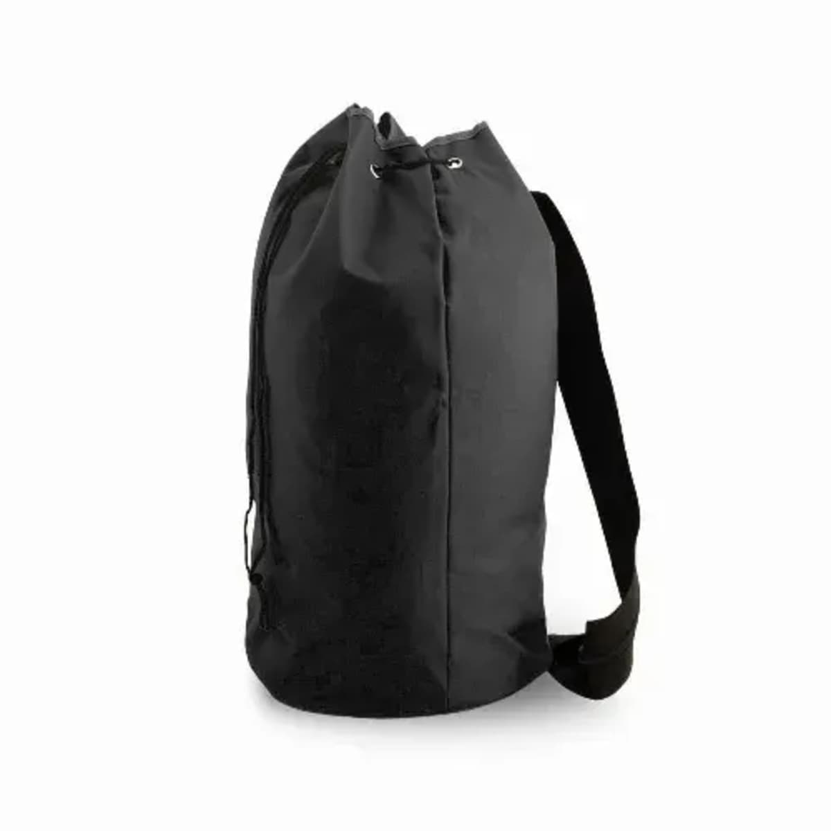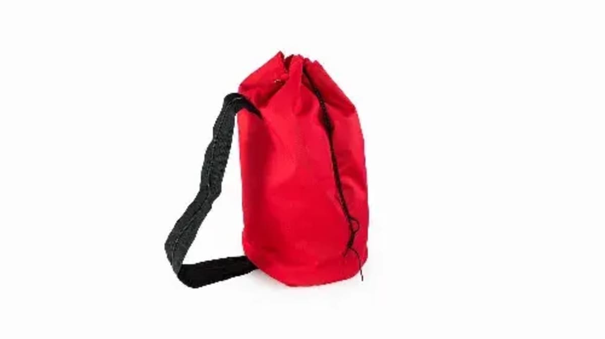 Upper string closure with adjustment accessory and reinforced metal rings. 2-in-1 side strap with zipper closure for carrying on one shoulder or both.