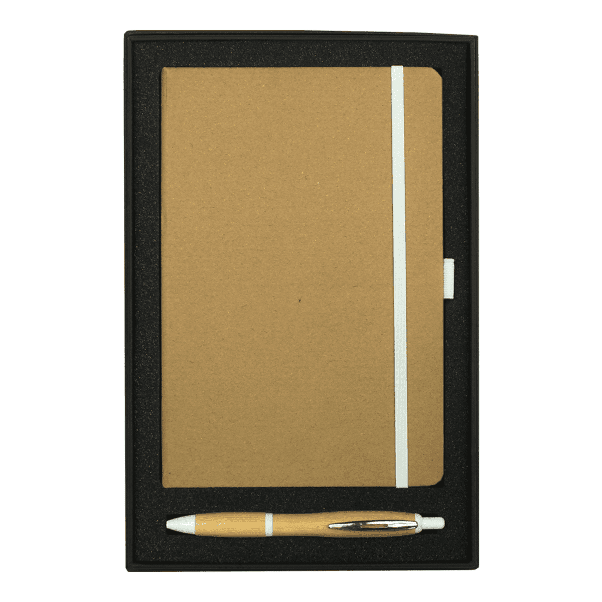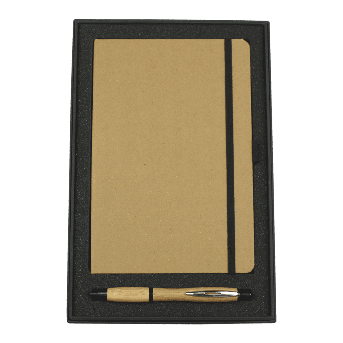 The perfect eco-friendly journal book gift set, including the Eco Colour Bound Journal and the Nash Bamboo Ballpoint Pen.
