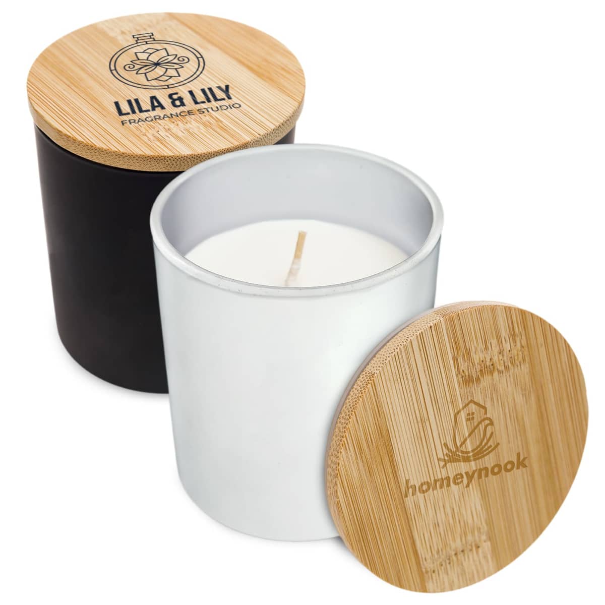 Print Areas:  Laser Engrave: Lid - 55mm Diameter; Screen Print: Lid - 50mm Diameter, Front of Candle - 50 x 50mm (LxW); Digital Print: Lid - 55mm Diameter; Label: Box (Standard) - 50 x 50mm (LxW), Box (Deluxe Arch) - 60mm x 70mm (LxW), Box Sleeve - 406 x 109mm