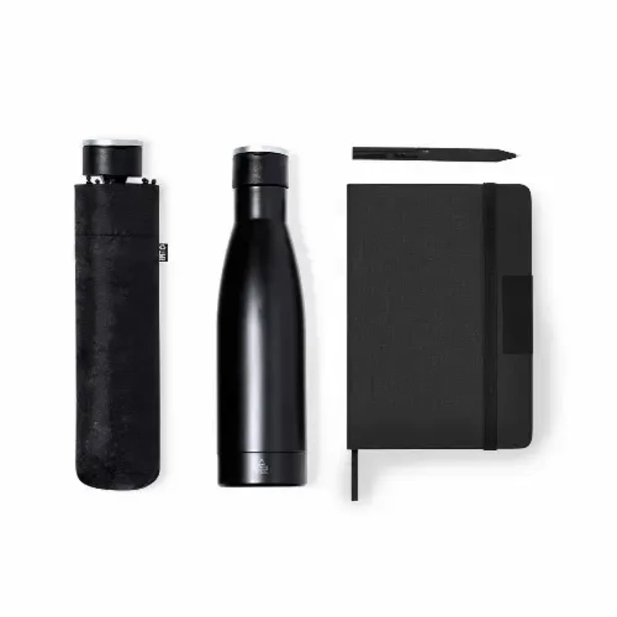 On box centred 100mm x 100m 1 colour screen print On box centred pad print 50mm x 50mm On bottle centred 50mm x 50m laser or pad On Umbrella on canopy centred 180mm x 100mm ( screen 1 colour , Supa colour) On notebook cover centred screen pri