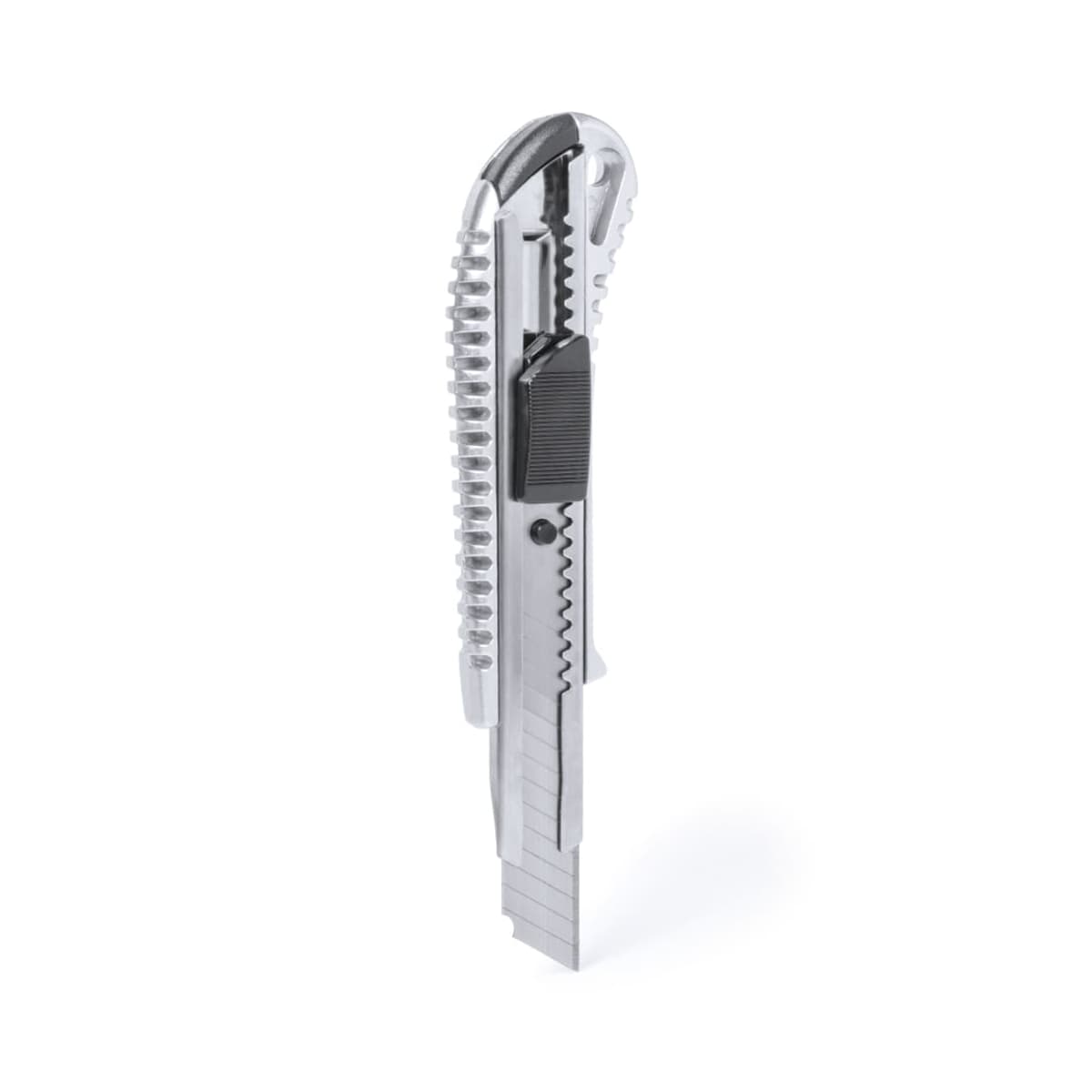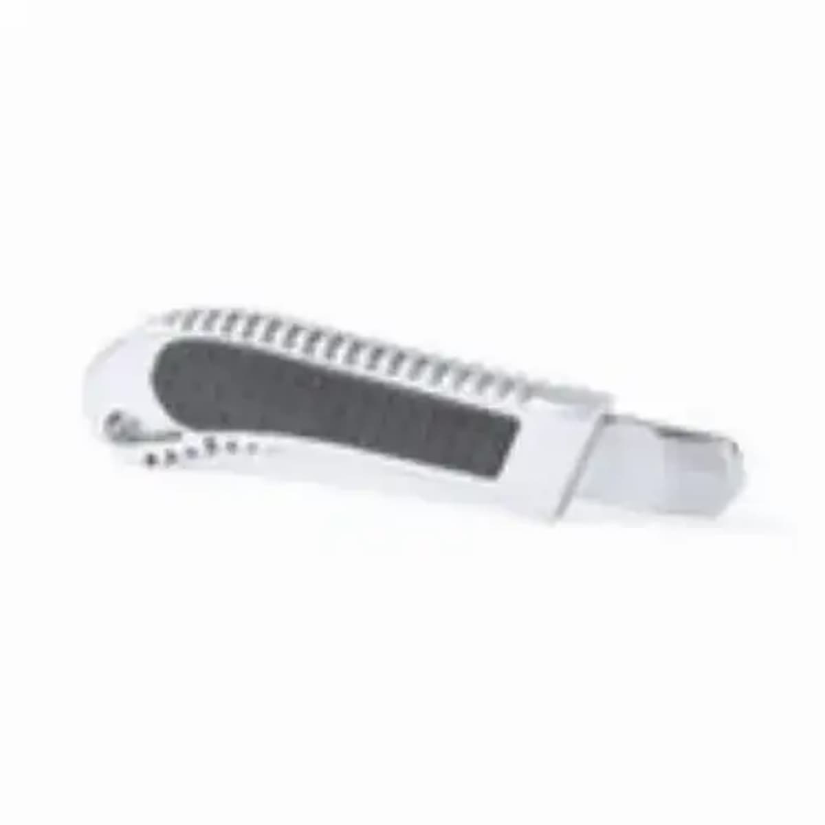 Cutter in combination of stainless steel and aluminum with wide blade and ergonomic die-cut handle.