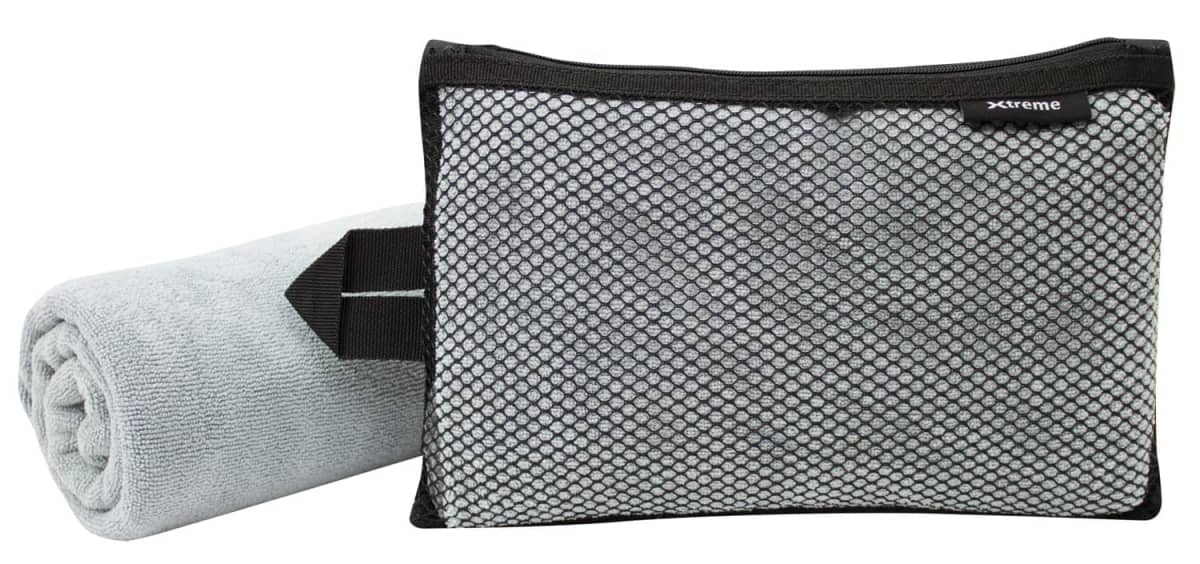 Quick drying and compactable 360gsm suede microfibre towels come packed in mesh storage bags and fit easily into backpacks, travel bags or luggage.