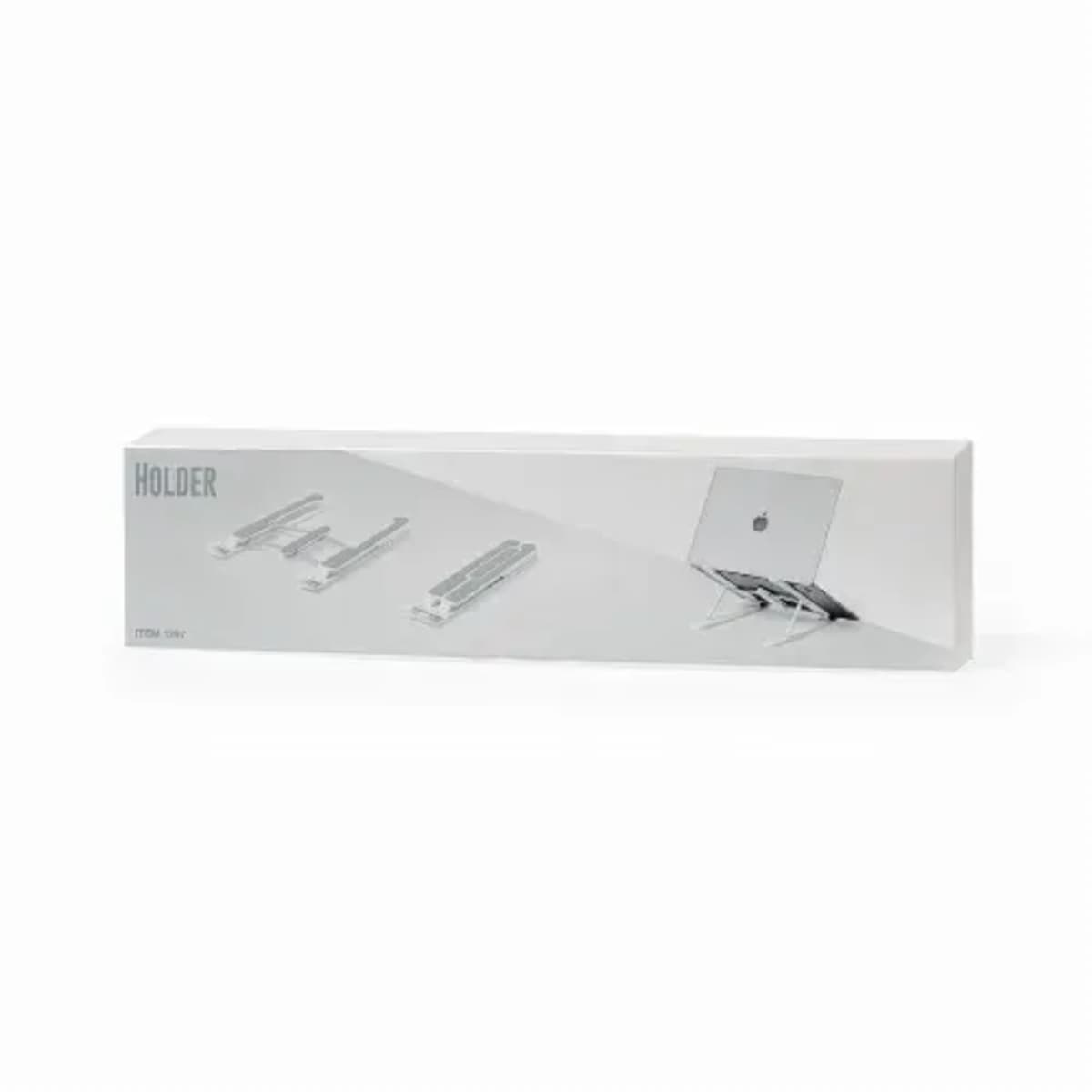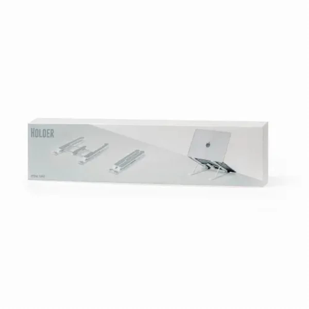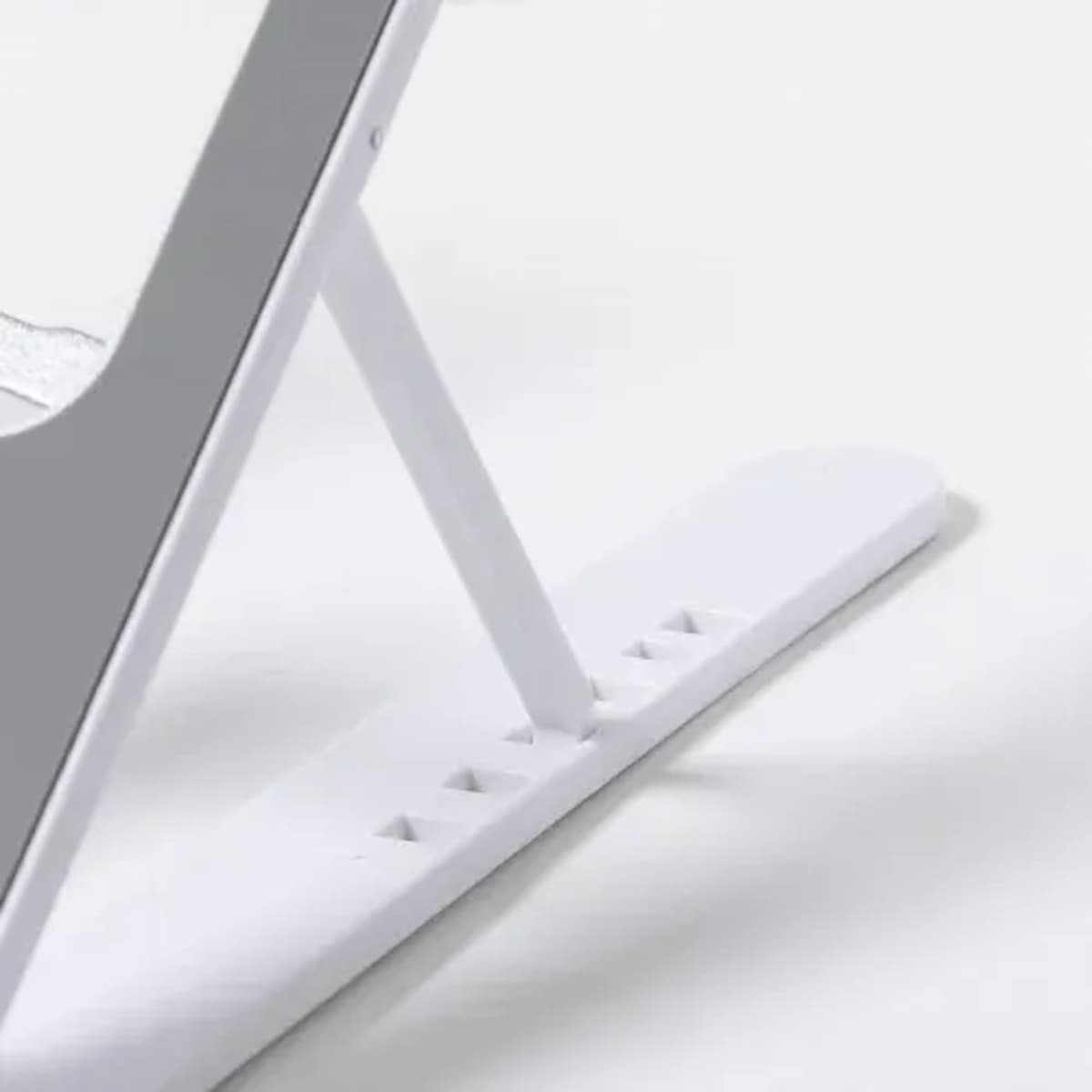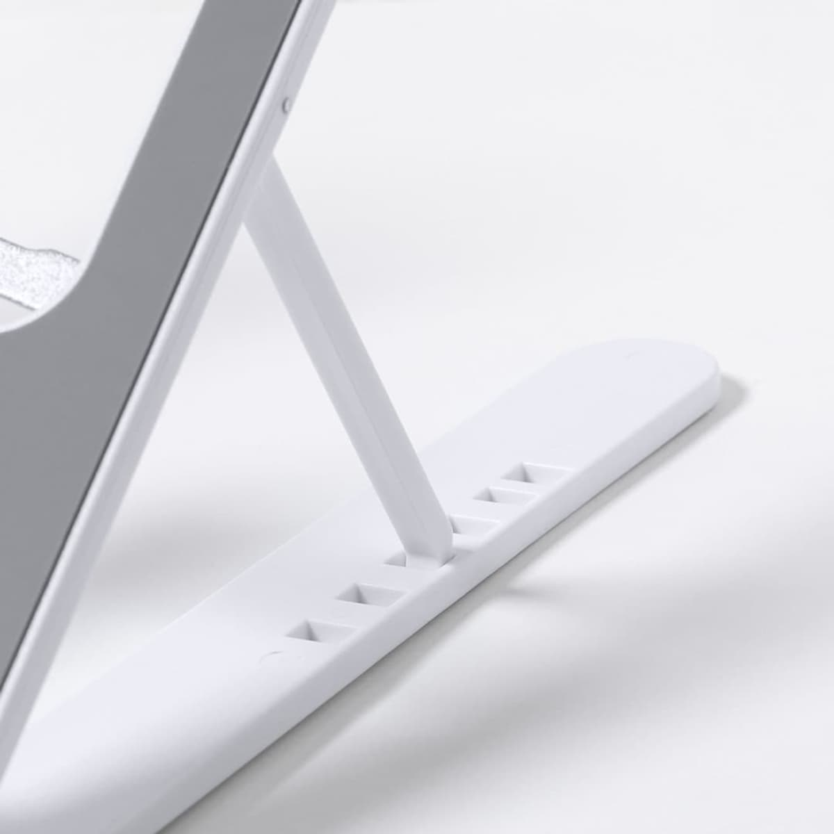 Made in durable ABS with anti-slip TPR protections for a solid fit to the device.Height adjustable, compact folding size and presented in a suede case with drawstring closure and inside an individual design box.