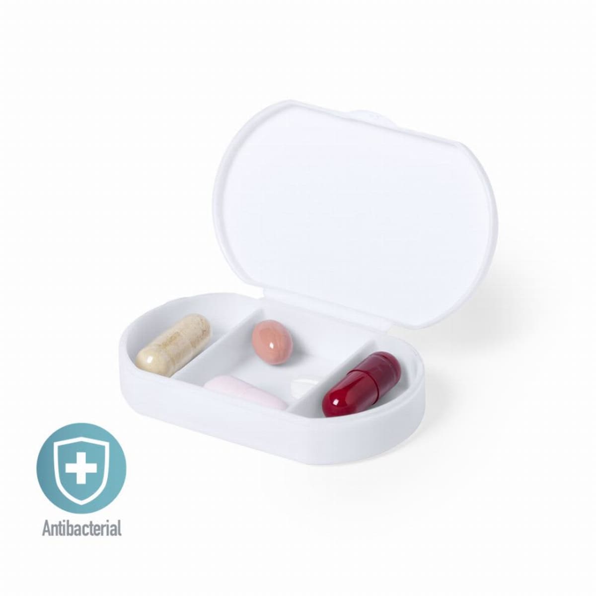 Antibacterial pill box in solid finishing.