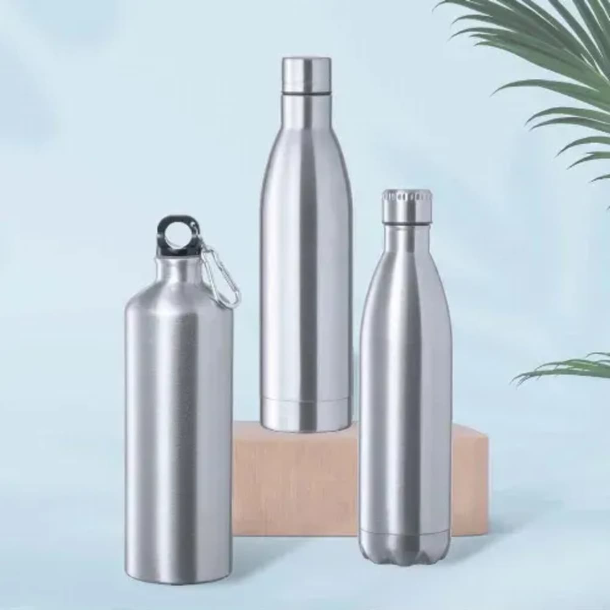 1 l capacity bottle, in stainless steel with shiny finish.