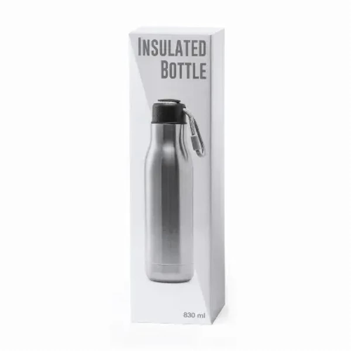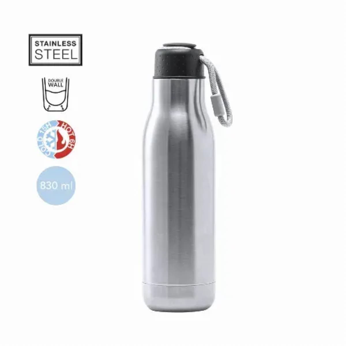 Stainless steel, double walled thermal bottle with 830ml capacity and glossy finish.