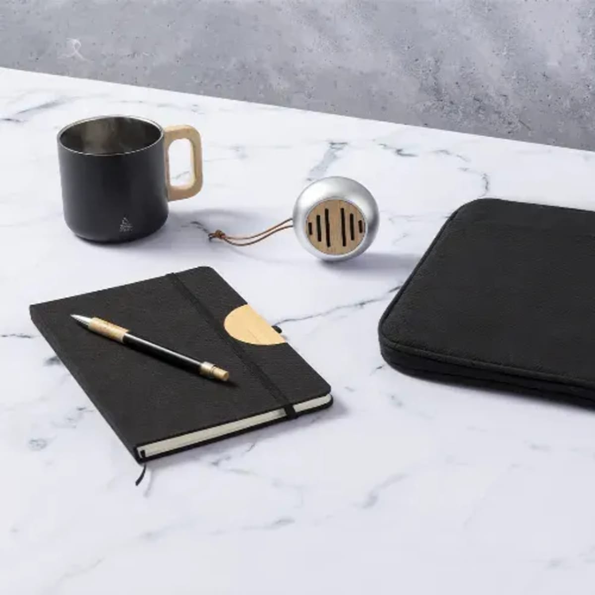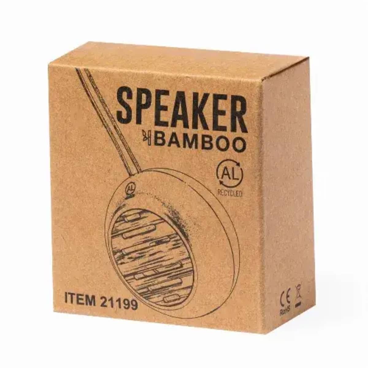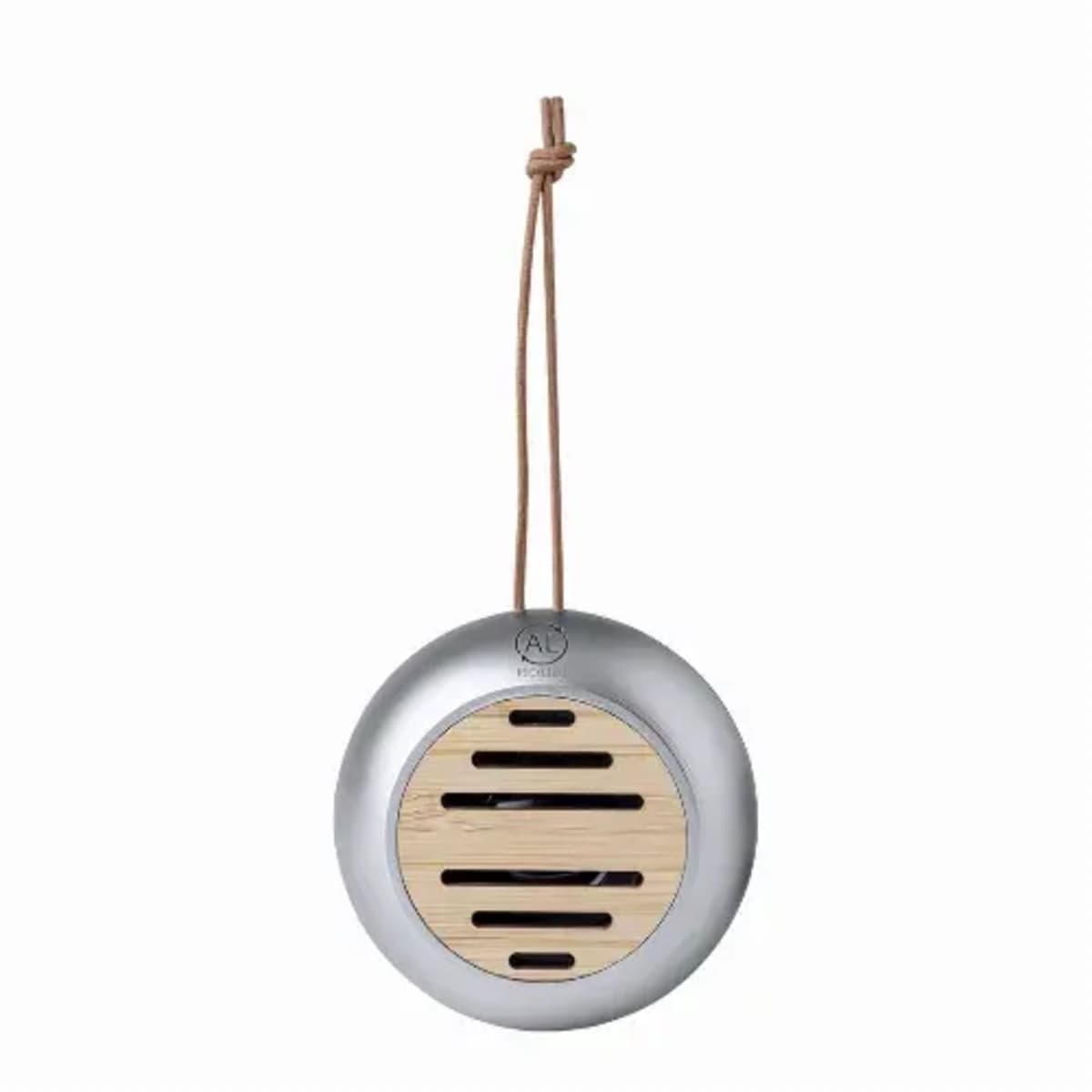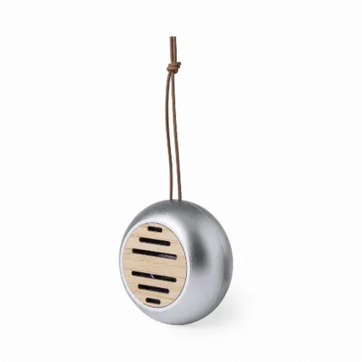 Features:  Made of eco-friendly materials, combining a resistant recycled aluminium body and a bamboo grille. 300mAh lithium battery, rechargeable via Type C cable (included). With ON/OFF button and LED charging status light. With Recycled Aluminium logo and la