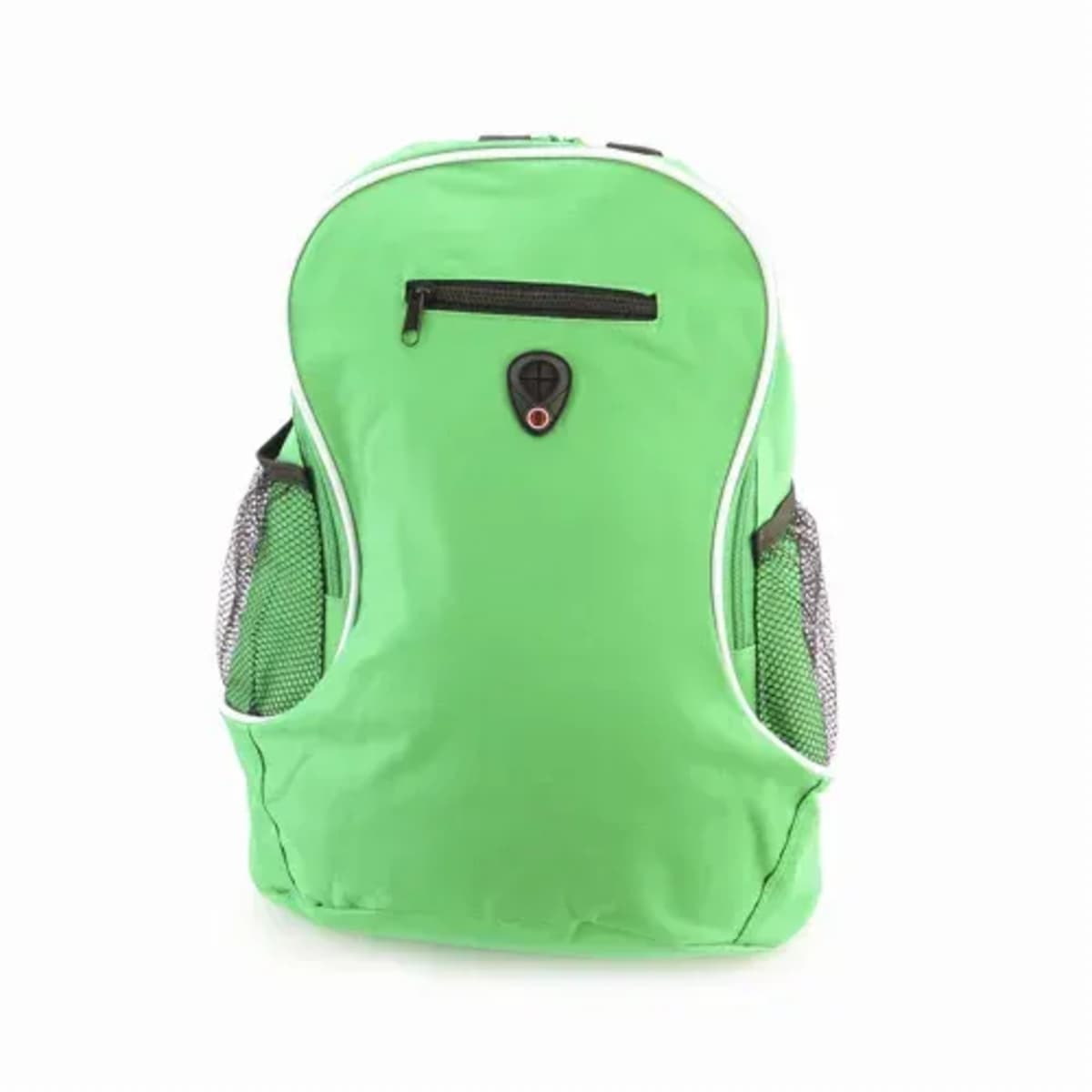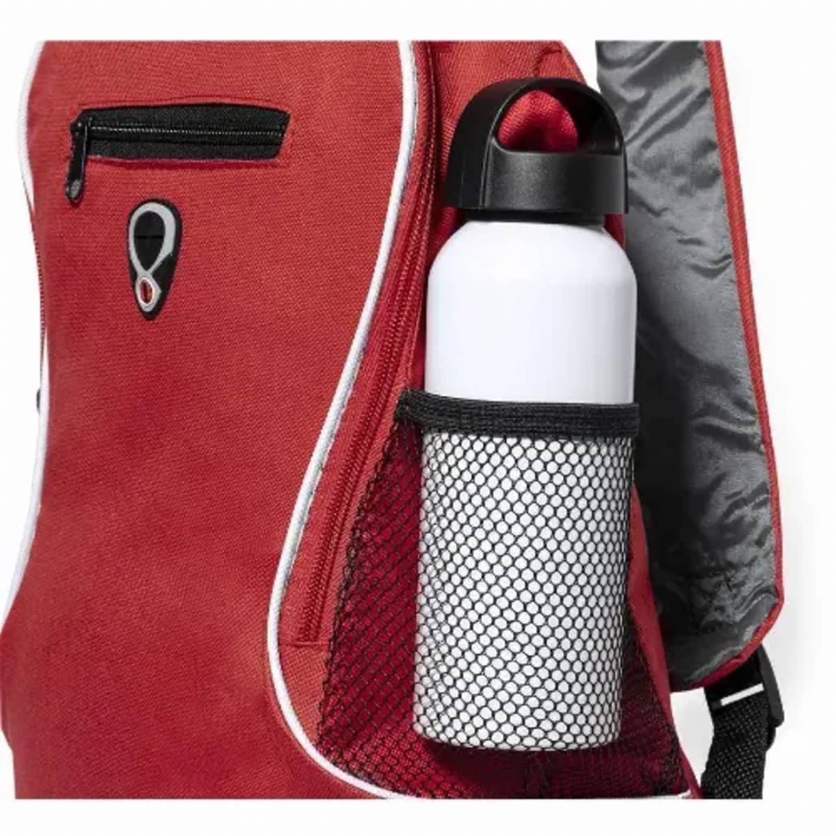 Made in fun and varied colours with wide opening main compartment and handy pocket in the middle part. Including two elastic mesh pockets (1 per side) and headphone outlet at the front. Black color accessories with comfortable, padded and adjustable