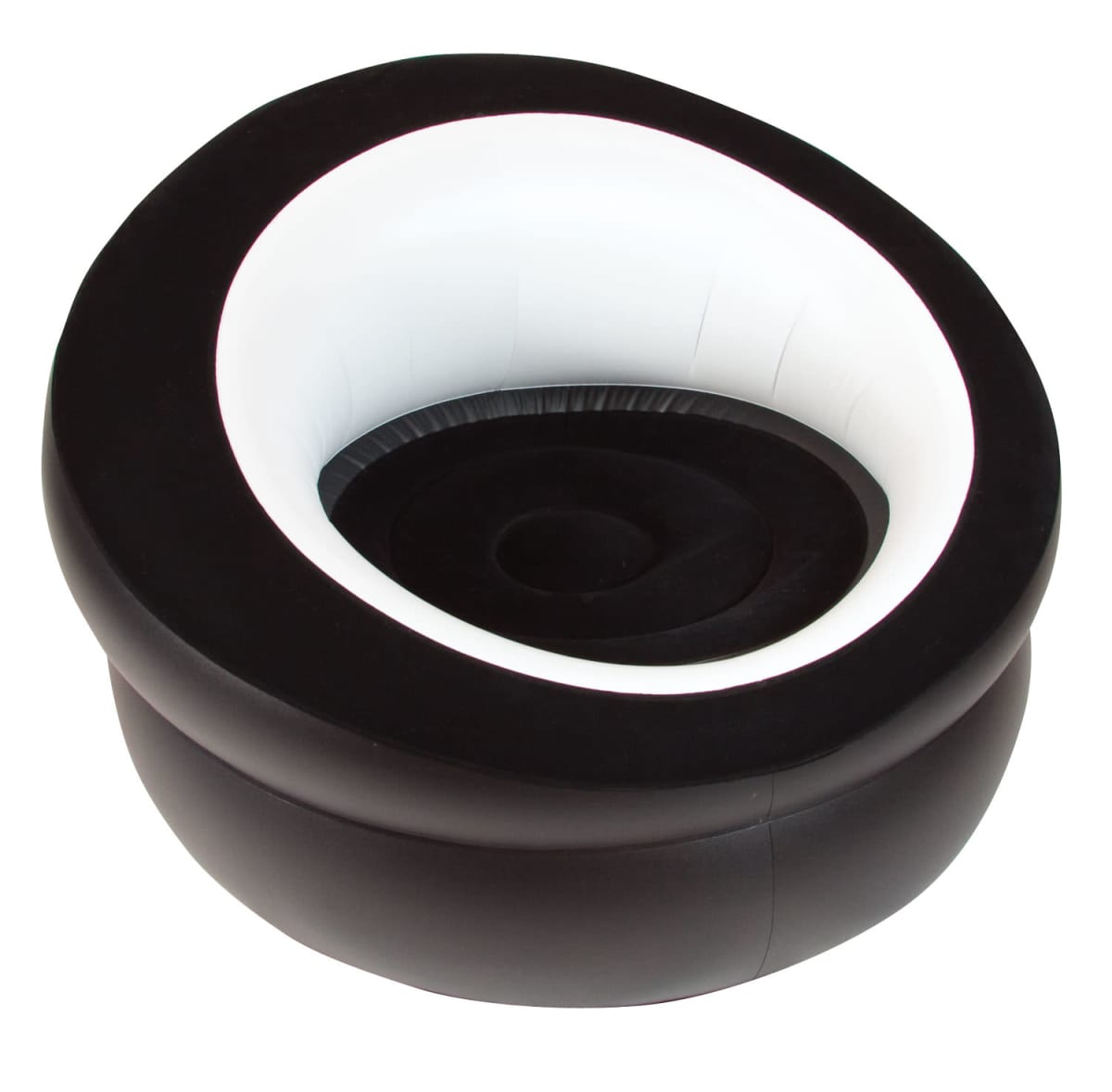 Black and white inflatable single chair in a combination of PVC and flocked PVC.