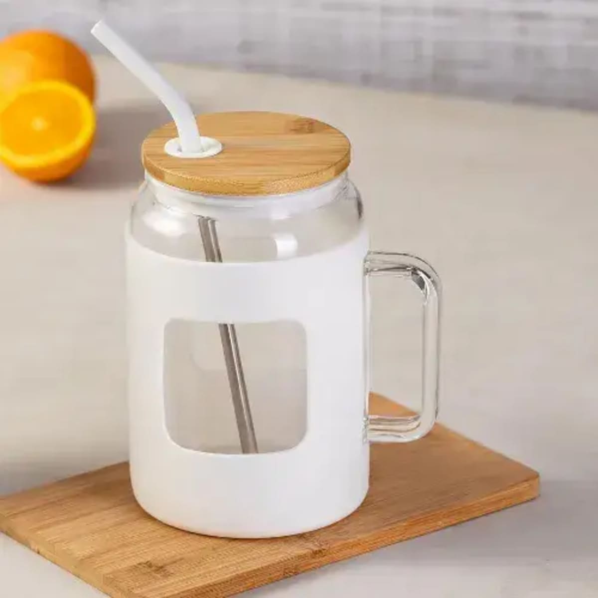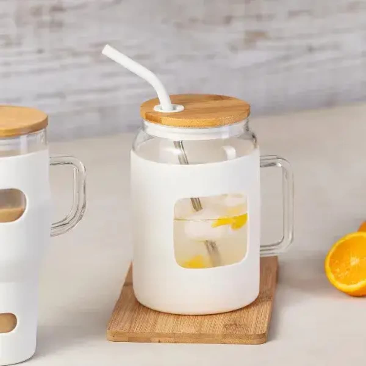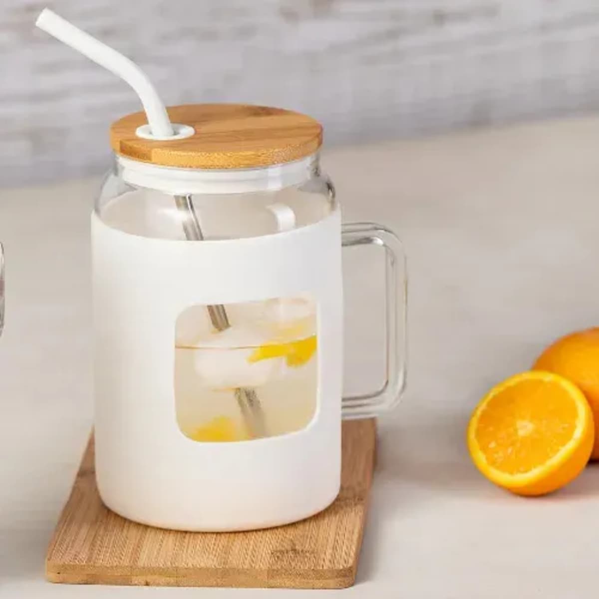 Including handle for easy carrying and protective cover in soft silicone. Bamboo snap-on lid, with straw hole and reusable stainless steel straw. With silicone coated tip to enjoy drinks comfortably and safely.Presented in an individual kraft design