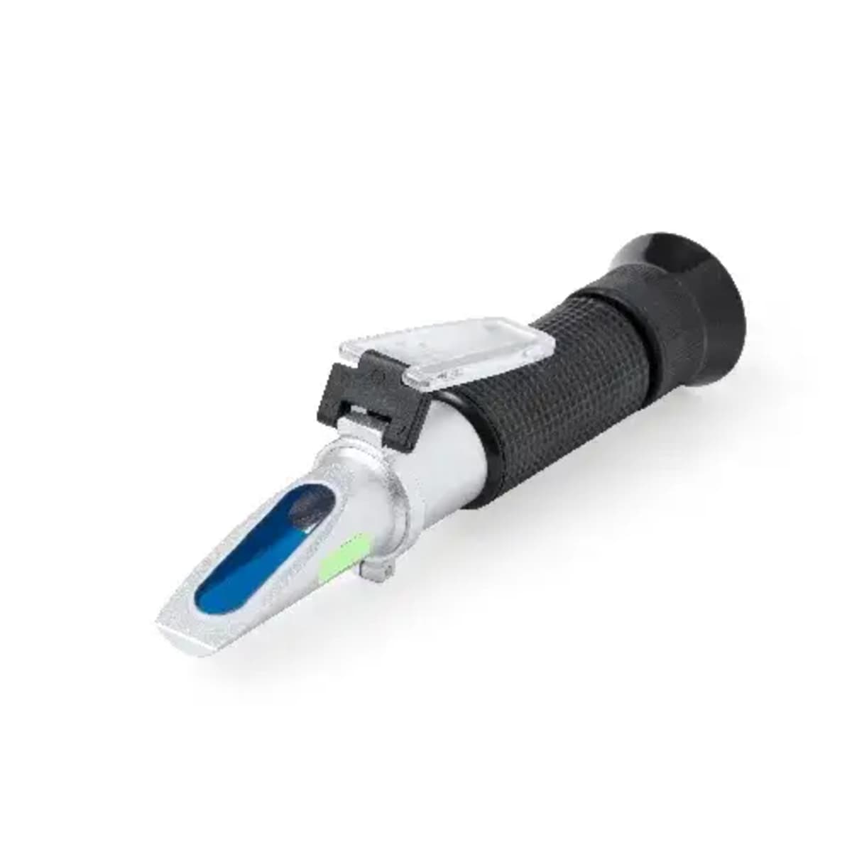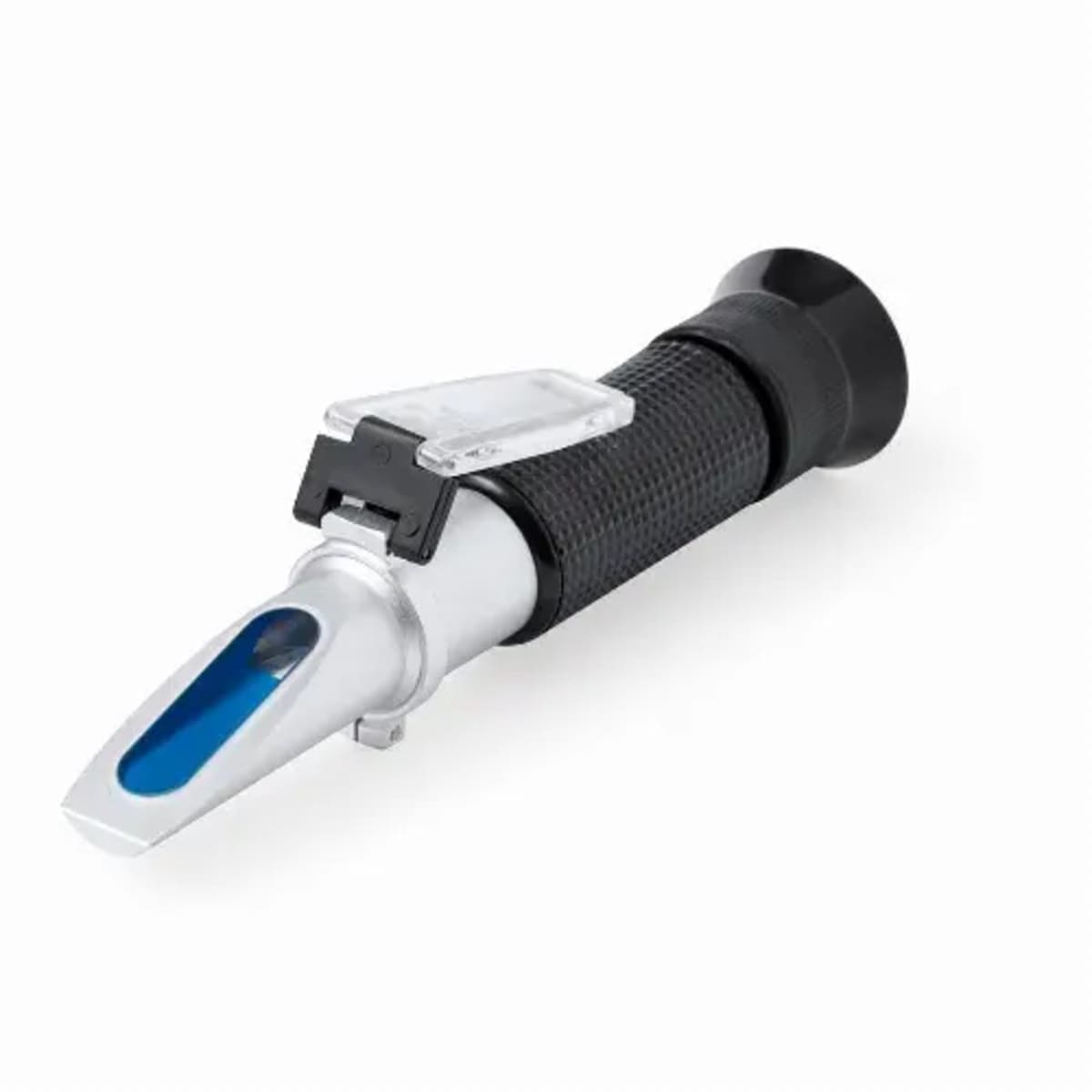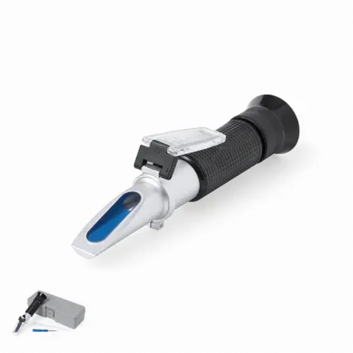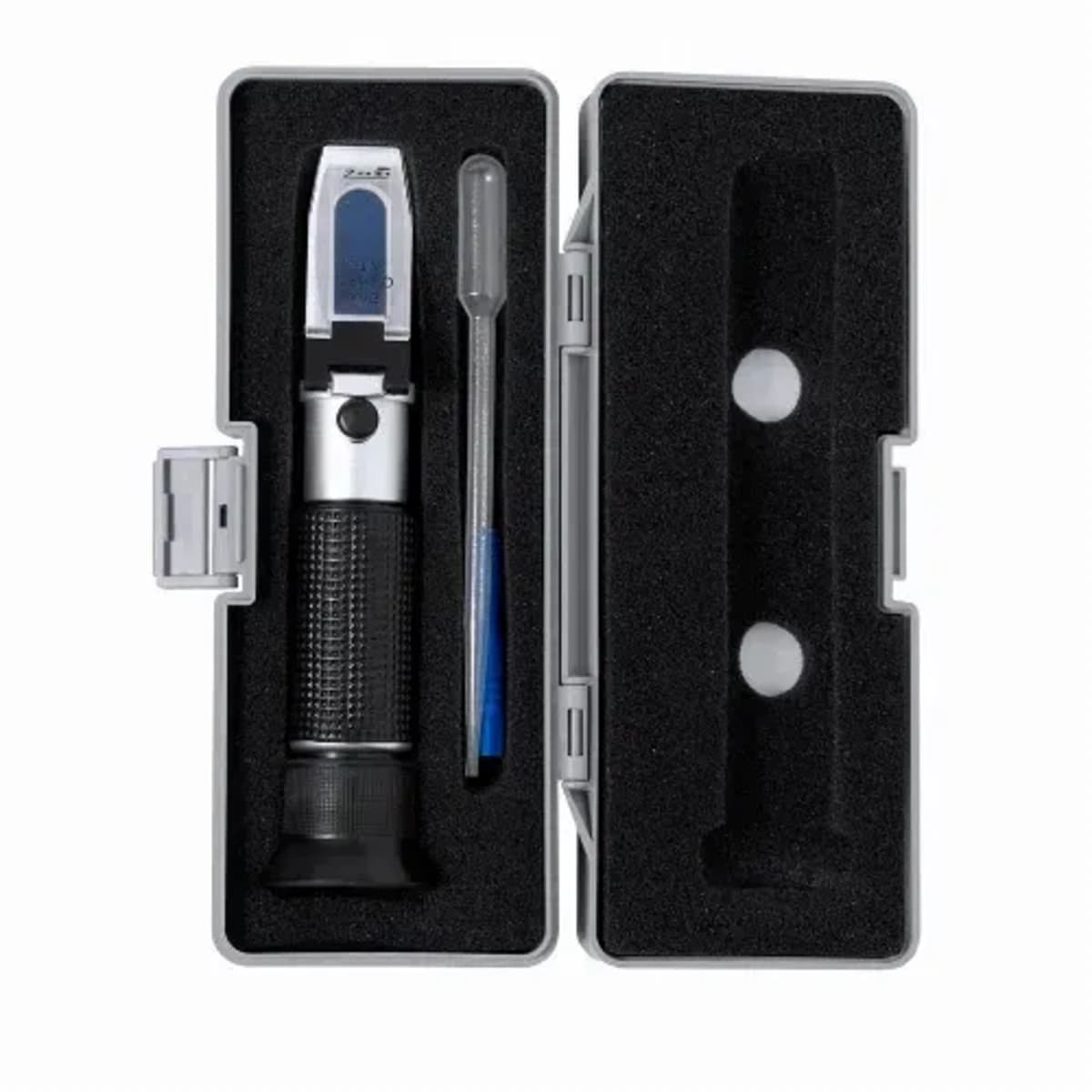 It is operated by pouring a drop into the designated compartment, then lowering the transparent lid and looking through the viewer, while adjusting the knob. Portable and supplied inside a hard case. With instructions manual in English and Spanish, a