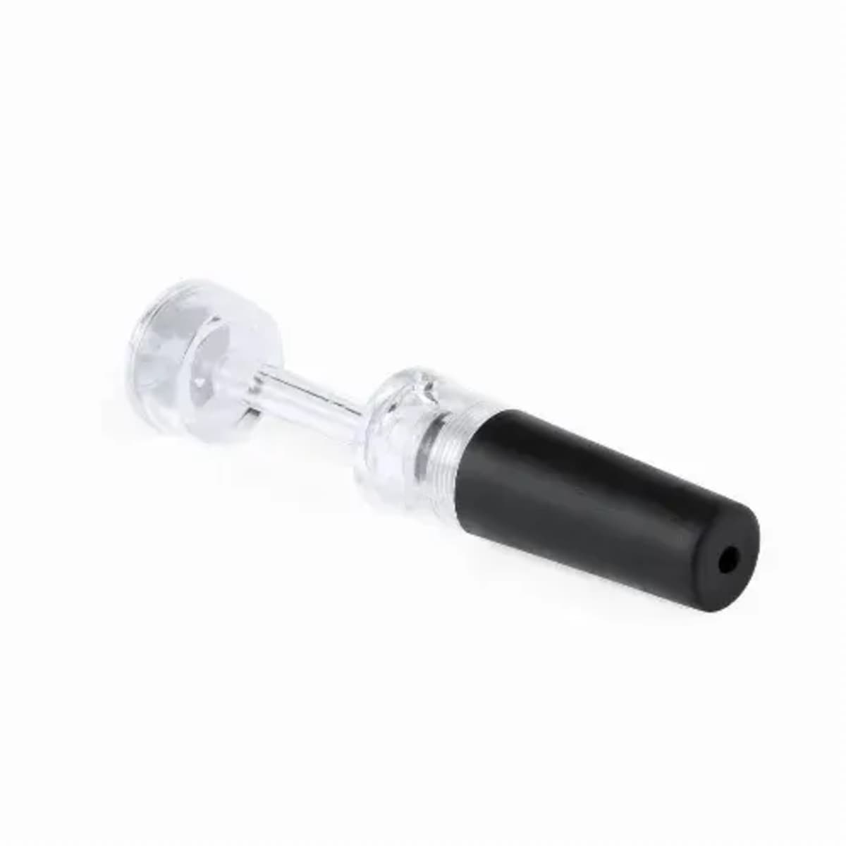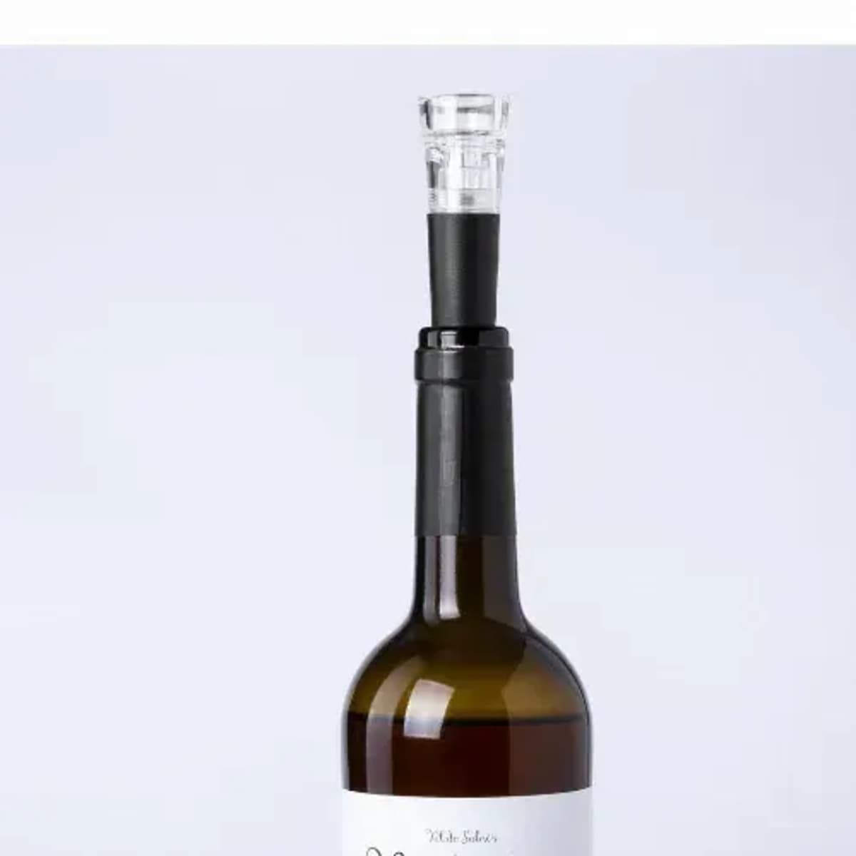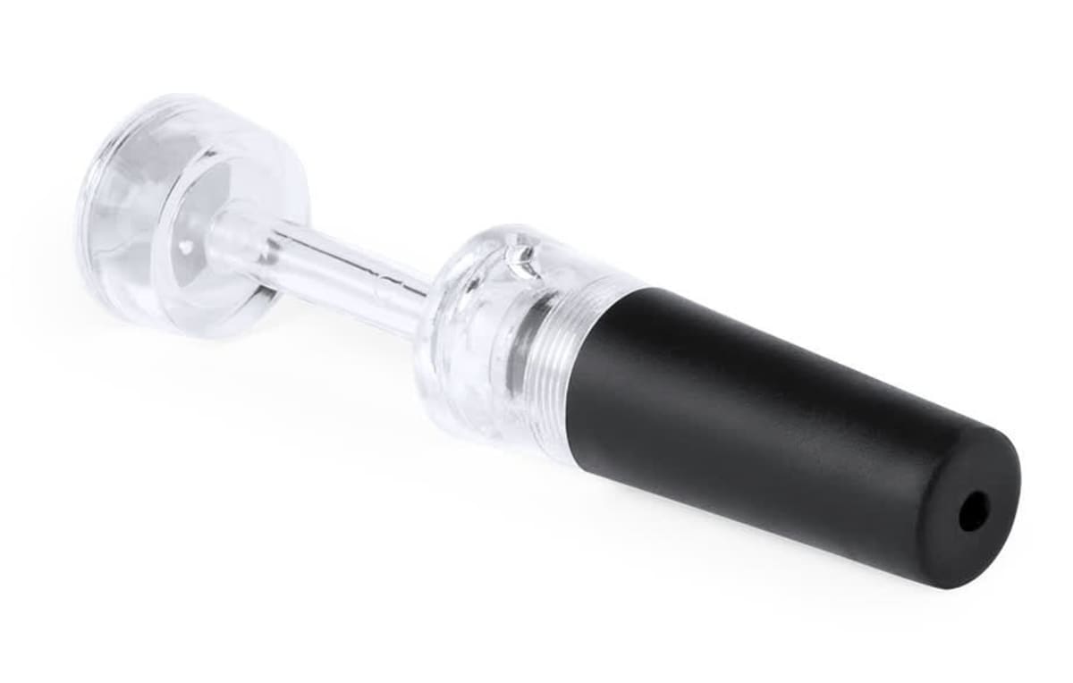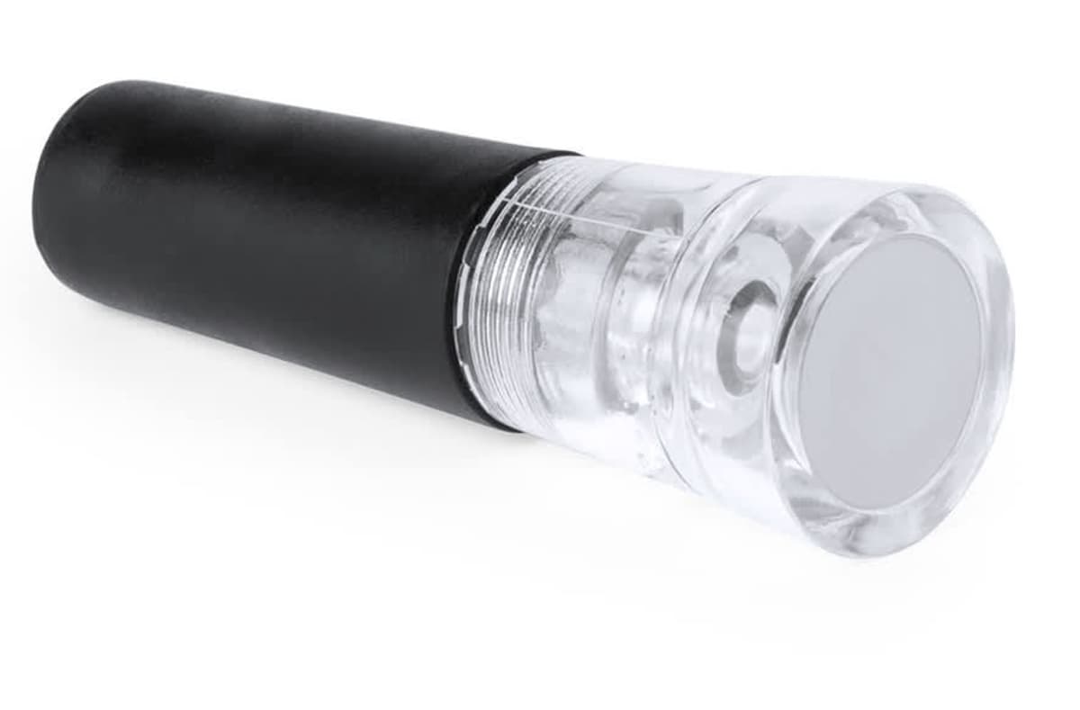 Vaccum lid for wine bottles in an elegant, black color and transparent design.