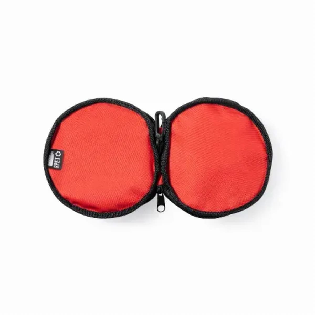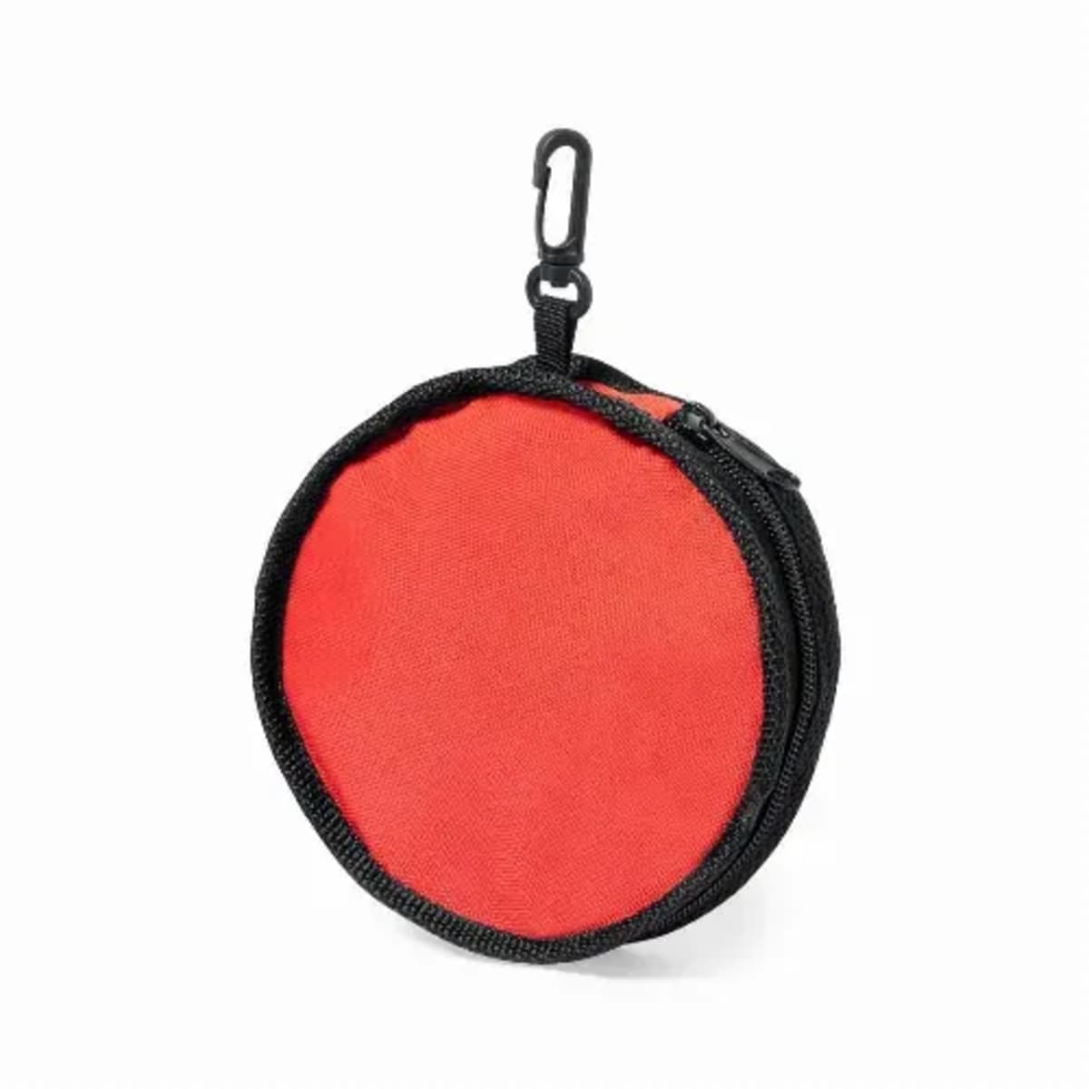 Outside made of durable 600D RPET polyester with reinforced piping. Waterproof inside. With carrying carabiner and zip closure with metal puller. Available in a wide range of colours.