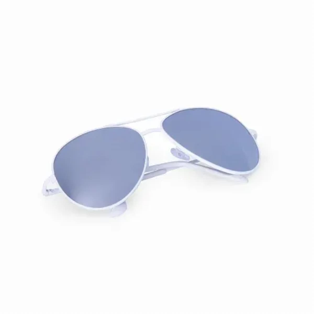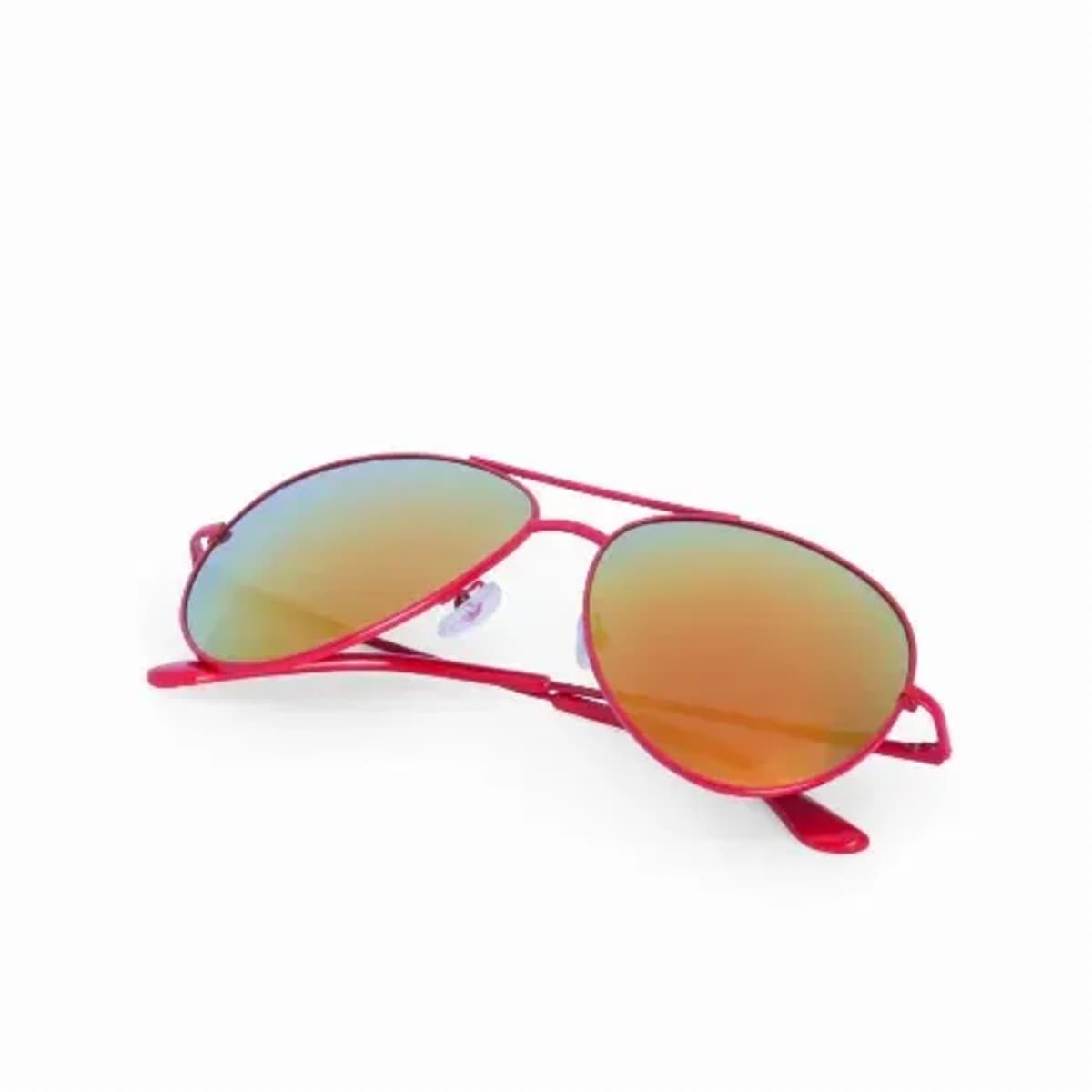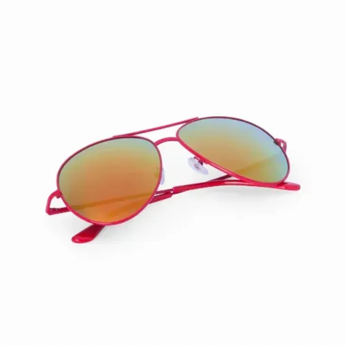 With metallic frame in bright tones and mirrored lenses in matching color.