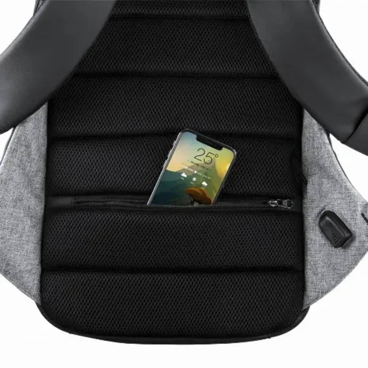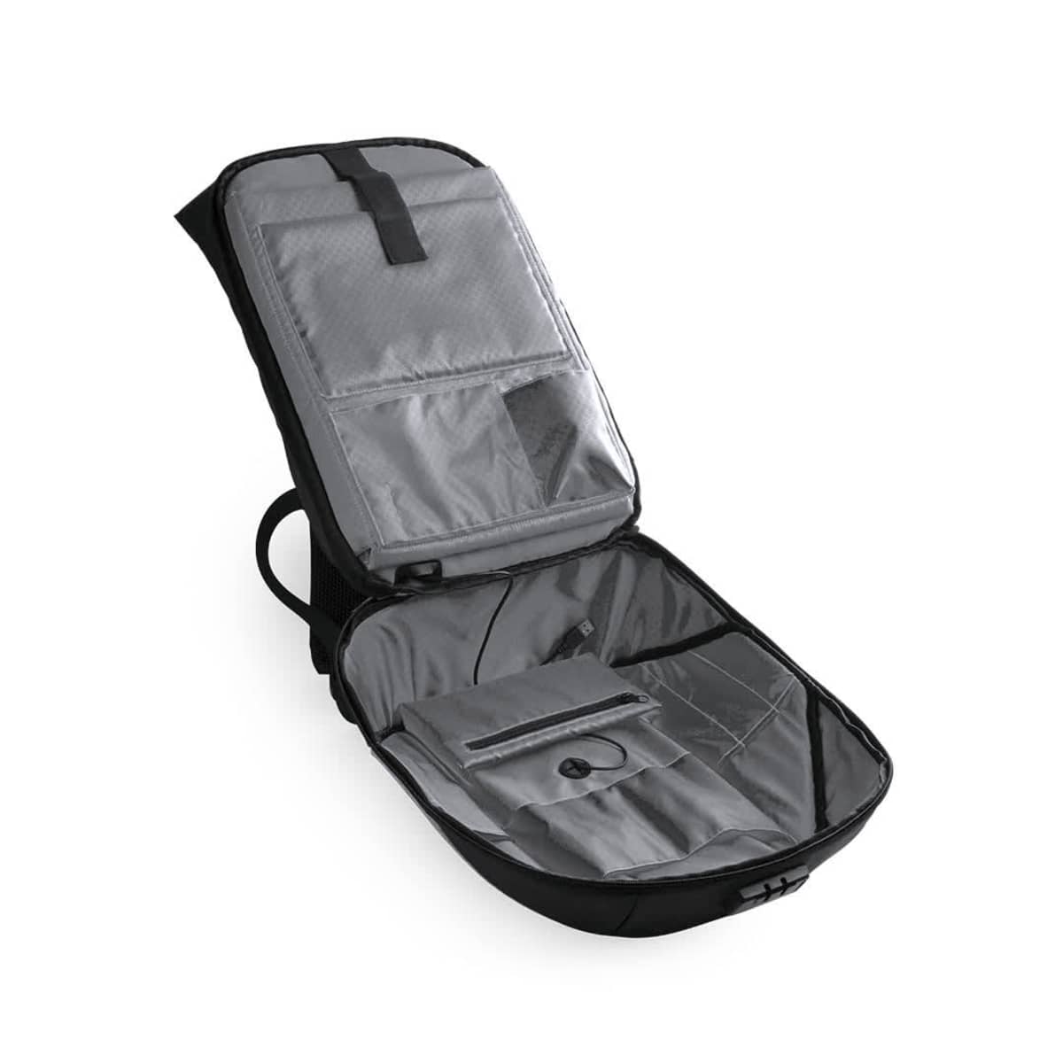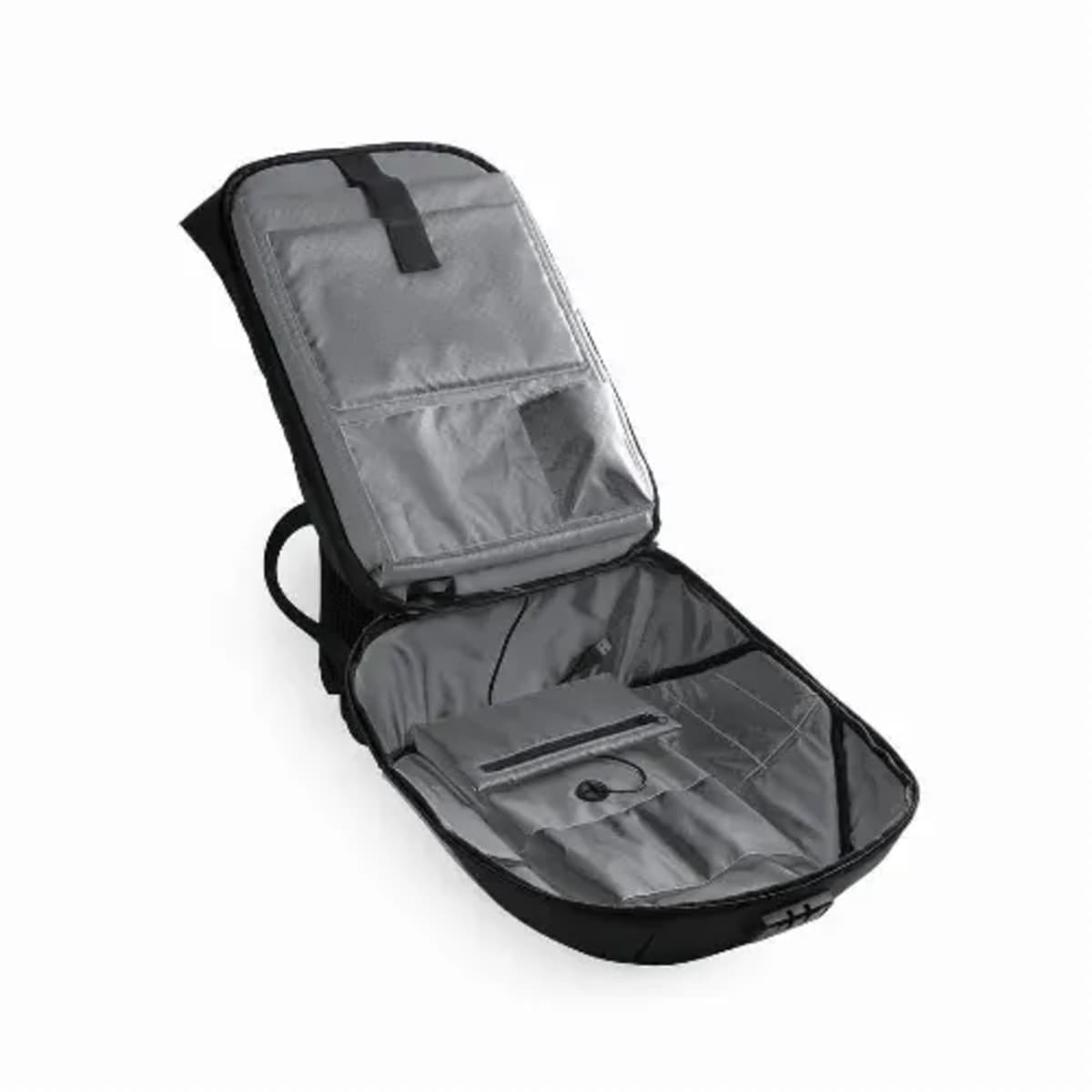 Features:  Water repellent, with USB charging port -powerbank not included- and security lock with password. Main compartment with double puller. Inside padded pocket for notebooks up to 15 inches and tablets up to 10 inches size. Shoulder and back straps with