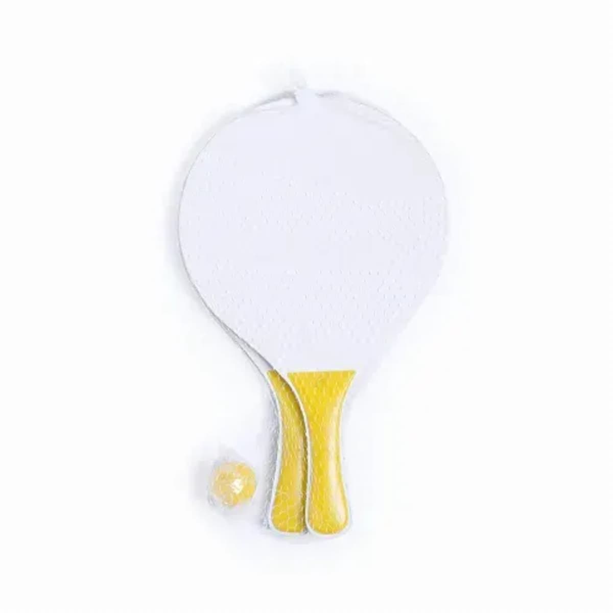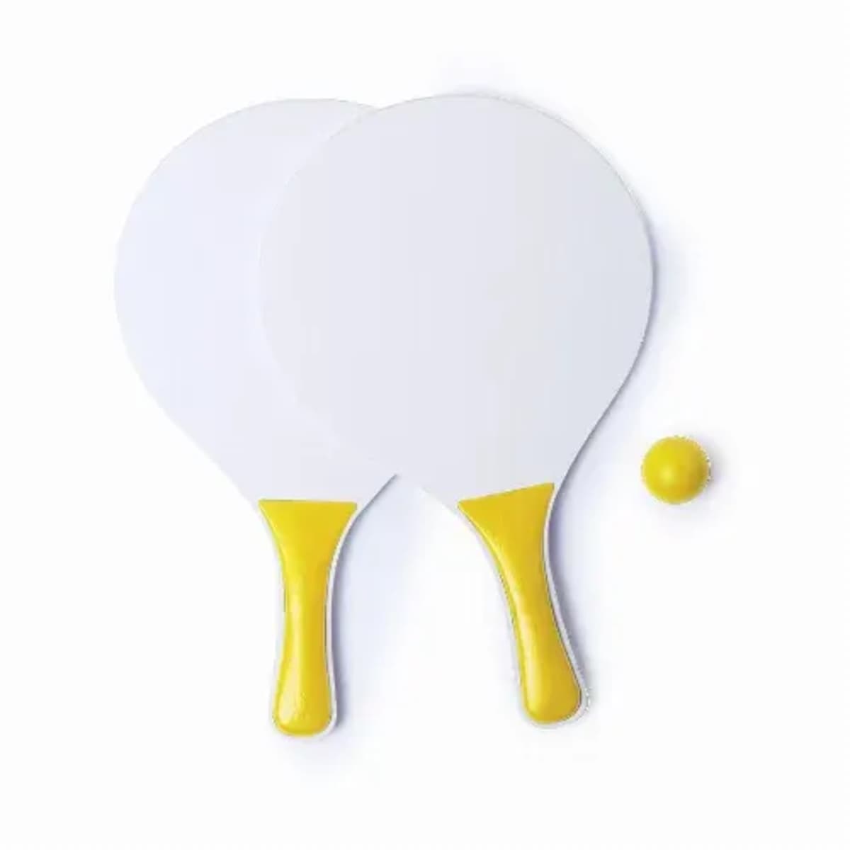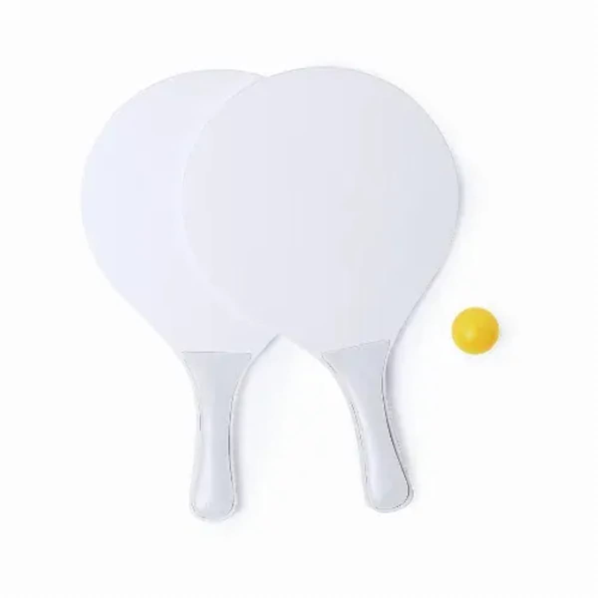 Pair of beach rackets in white color, natural wood.