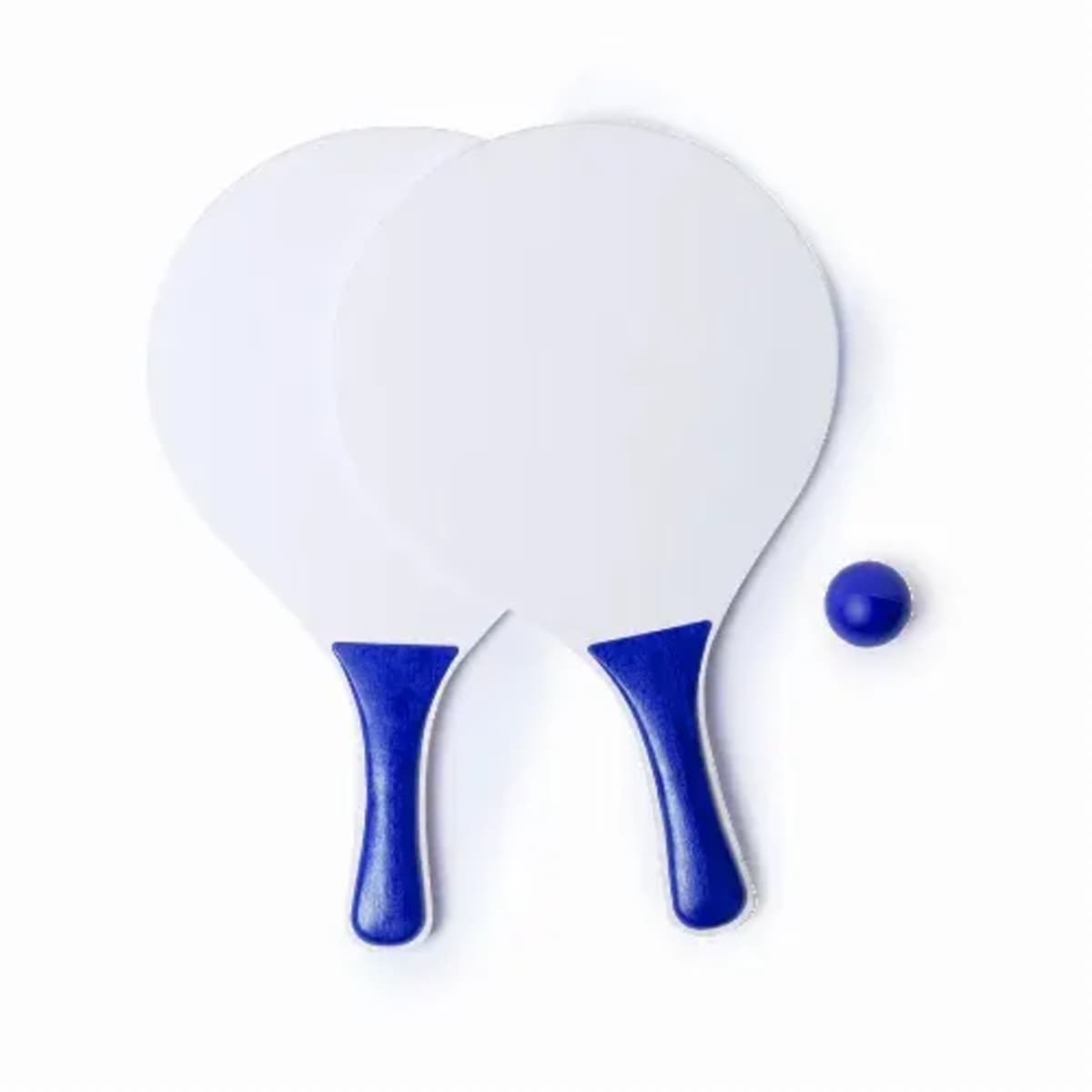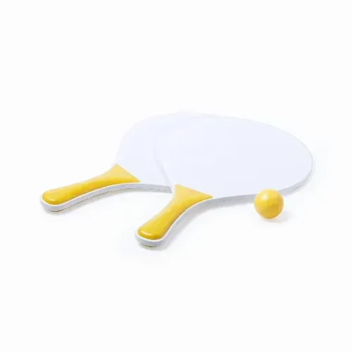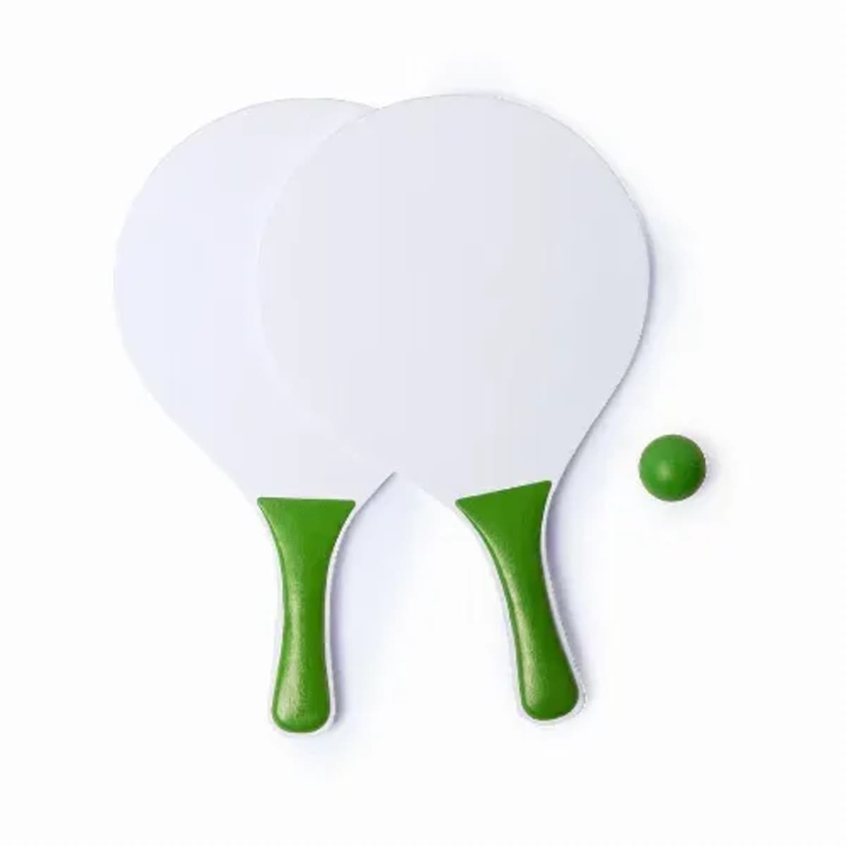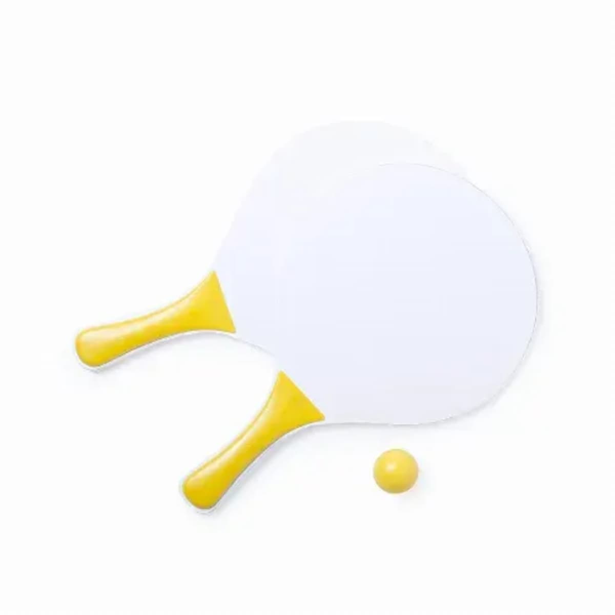 Pair of beach rackets in white color, natural wood.