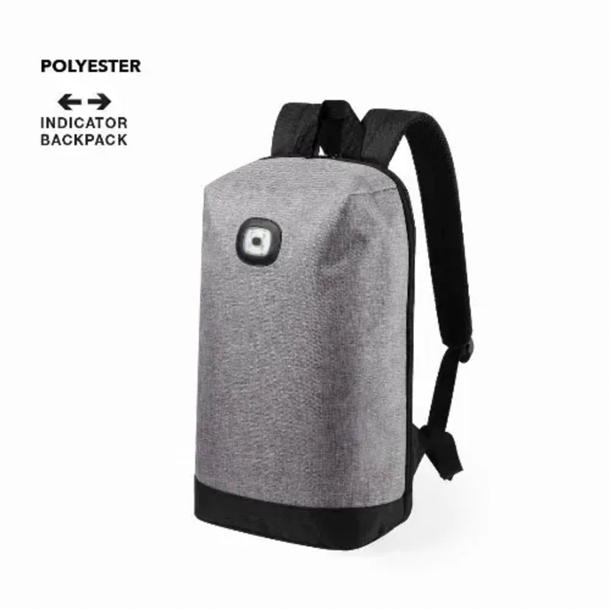Urban design, including blinking and steady lights, with 3 lighting modes. Main compartment with double puller zipper, with padded, adjustable shoulder straps and padded back. Battery powered (button cells included).