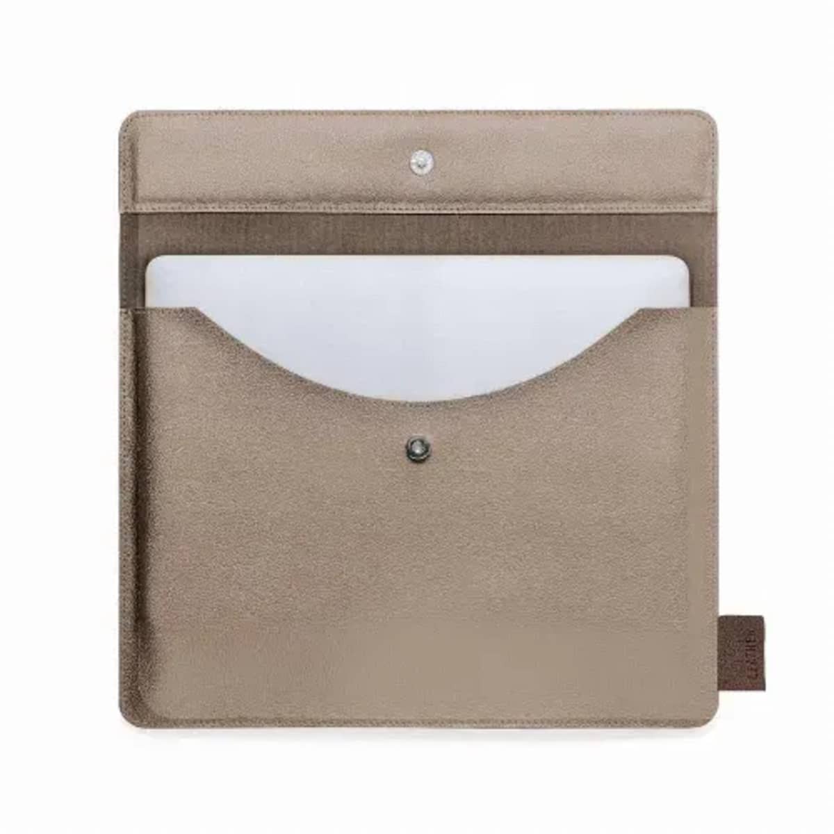 Main compartment with flap closure and padded inside. For laptops or tablets up to 14 inches. Outside label with the distinctive of recycled leather.Recycled leather recovers the fibers discarded in the manufacturing processes of leather, minimizing